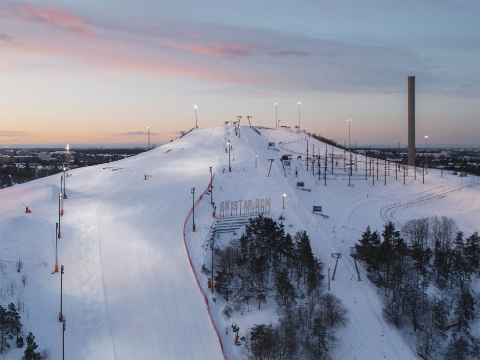 In Stockholm, just south of the city centre, there’s a ski resort built on a hill of rubbish – that is, if you can call Hammarbybacken a resort. There are no chalets, no fondue fumes, no fur-lined après bars. Instead, as you descend the slopes, the skyline of Sweden’s capital stares back at you – hotels, offices and apartment blocks standing in for peaks and pine forests. No altitude sickness or hair-raising transfer roads. When I took to the pistes of this ski site in early spring last year, there was no snow on the surrounding streets – only two thin white ribbons trickling down a 93.5-metre mound towards a café and ski hire centre. Val-d’Isère it is not.