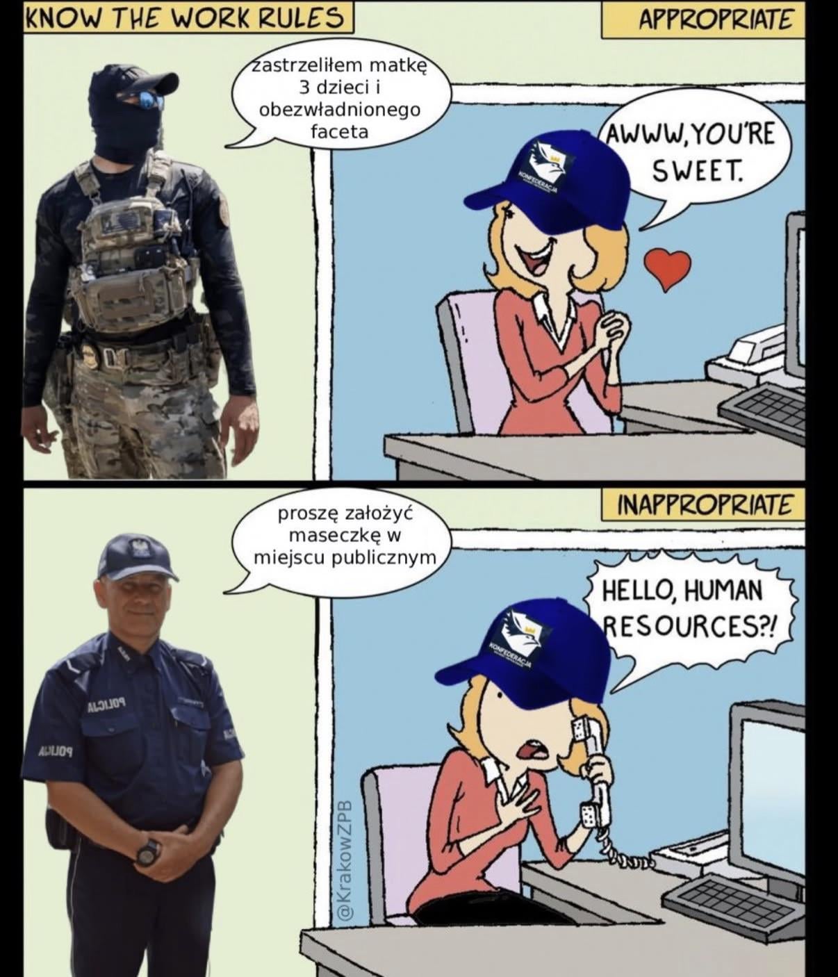 I have a suggestion: Next time you are stopped by police in Poland, wait until the guy is by your car and then try to run him over. They probably won’t shoot you (at least not instantly, there are a few past examples where driver WAS shot), but that’s only because polish police doesn’t have proper firearms training, so odds are he will forget he even has a gun is such a stressful situation. However: you are fucked either way.
