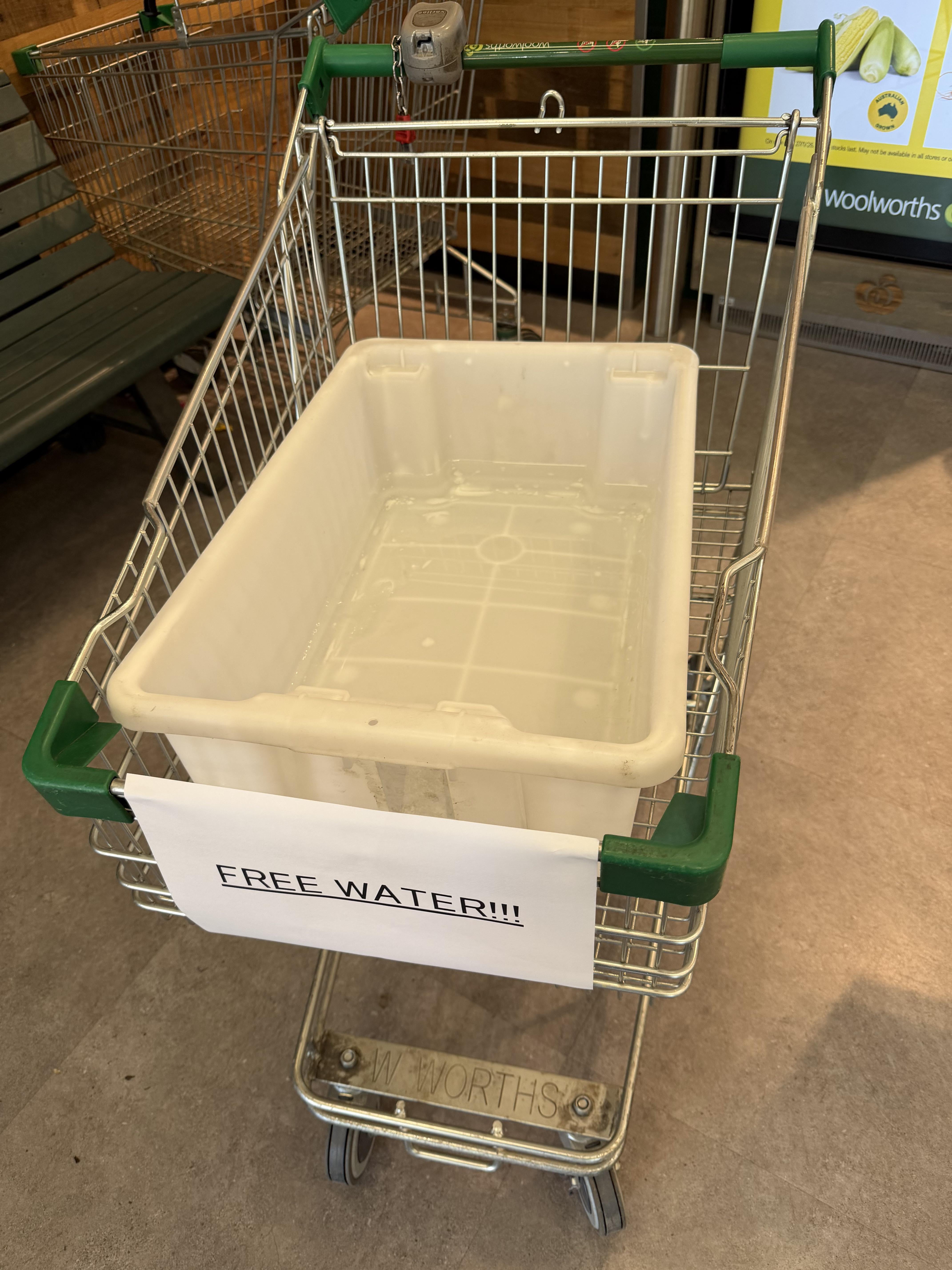 It’s been nice of Woolworths to hand out free water on hot days, but I feel like it would be nicer if it was actually in bottles and not just a tub of water that you have to pick up with your hands 🤣