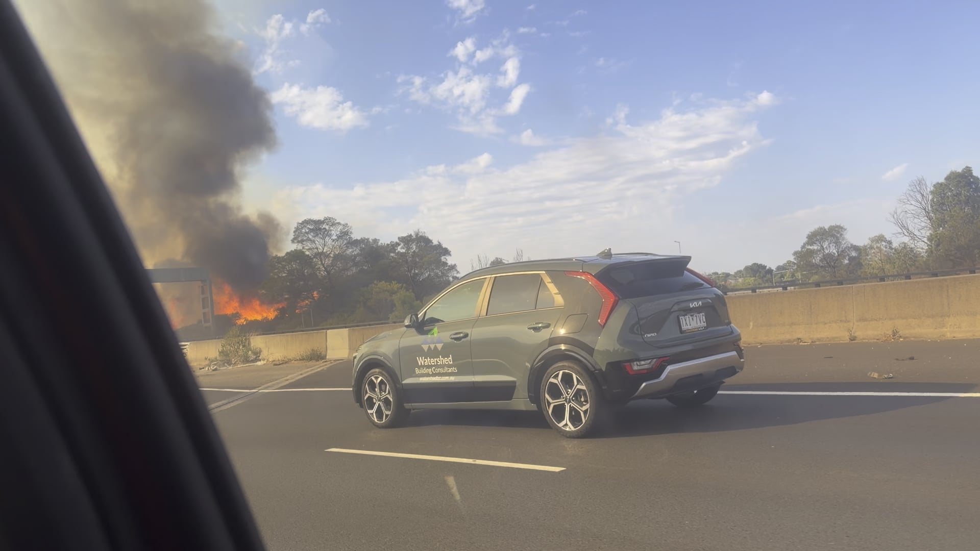 Yah I was exiting Monash onto Eastlink ramp about 5.45pm and we got diverted off onto Eastlink northbound, it was out by then but appeared to be a Hilux type vehicle burnt out on the hill between Monash and the ramp.