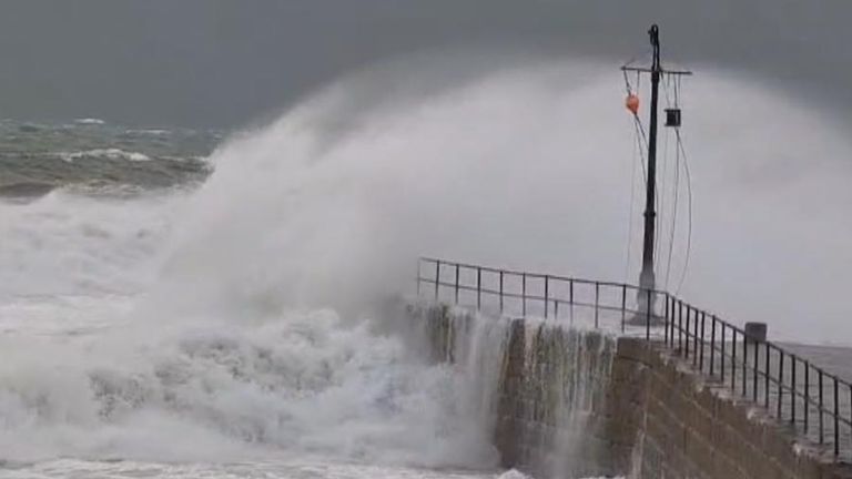 In Devon and Cornwall, large waves lashed the coast as Storm Chandra swept through the area.