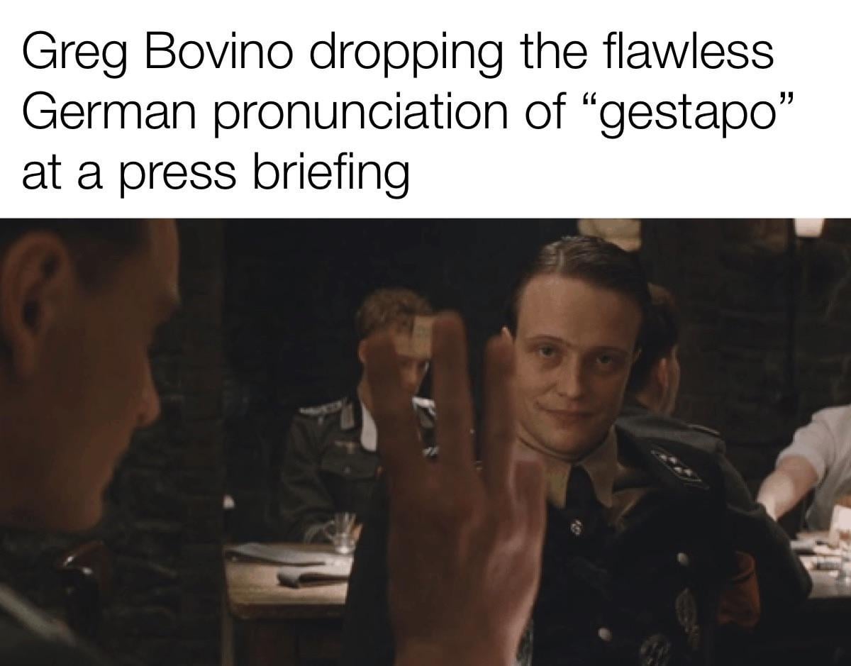I was thinking how he must correct everyone when they say the word gestapo incorrectly