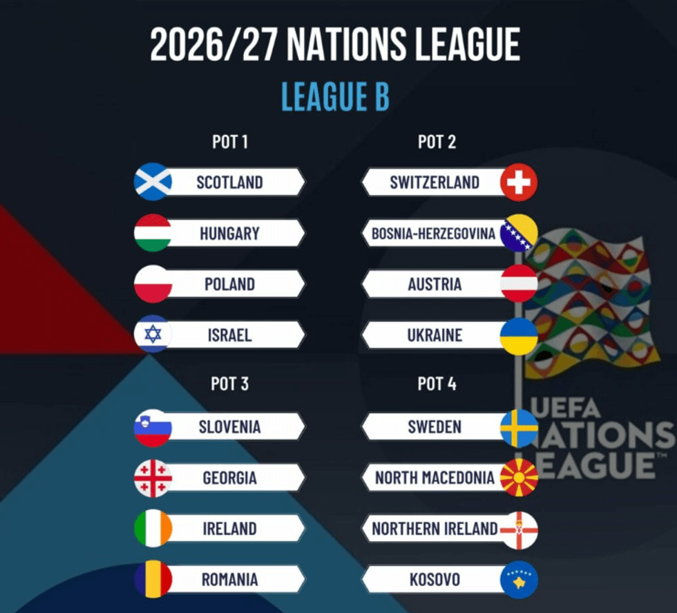 The draw for the new edition of the Nations League will be held on February 12 in Brussels. Kosovo will be in pot four, along with Sweden, North Macedonia and Northern Ireland.