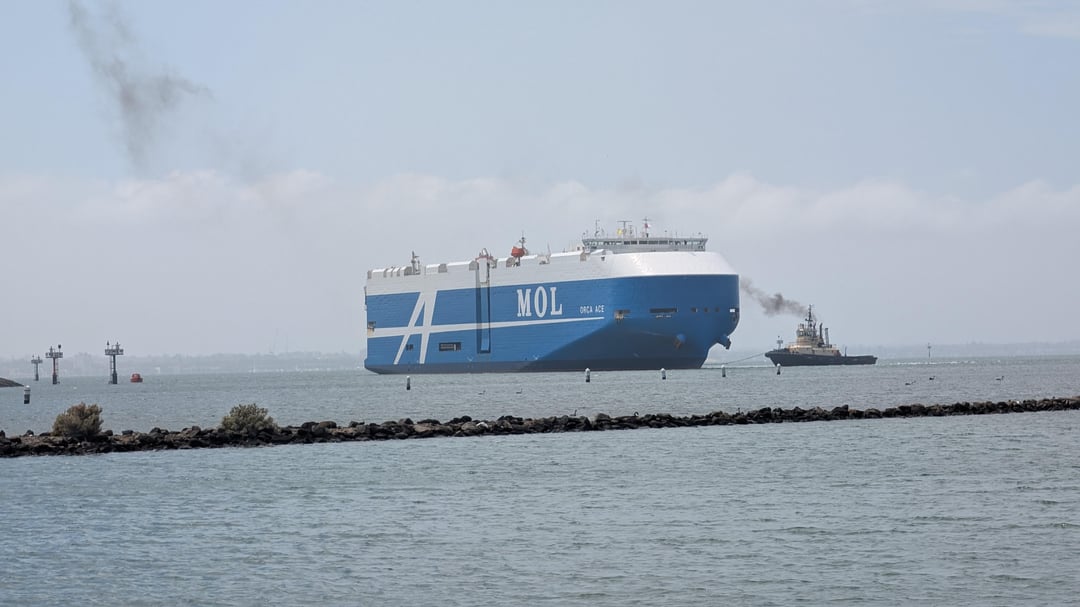 Saw this massive Roll on Roll off (RORO) Arriving this morning. View from Williamstown. Posted by bluejasmina