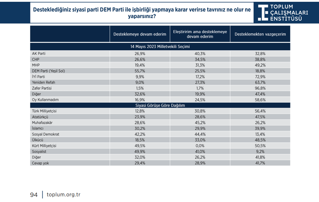 Keşke DEM seçmeni oranı yazsaydı ama daha tablo aşamasına gelmediğim için muhtemelen tablo da gösterdiler.