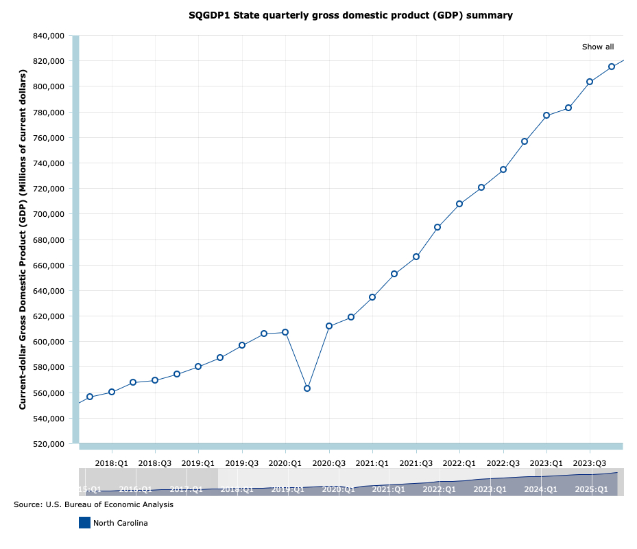 The US Bureau of Economic Analysis (BEA) recently released third-quarter numbers for 2025, showing a gross domestic product (GDP) increase of 5.6% for North Carolina.