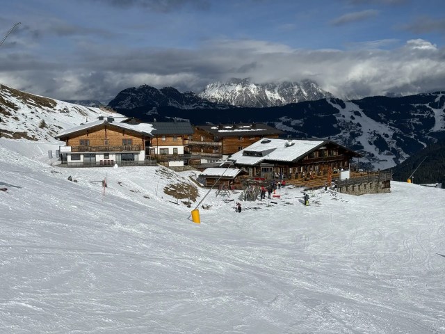 Then it was time to close the loop, heading back toward Fieberbrunn, skiing familiar runs in new light, and savoring the final turns of the trip. At Enzianhütte near the Fieberbrunn base, we fittingly grabbed one last Kaiserschmarren before stepping out of ski boots for the final time.