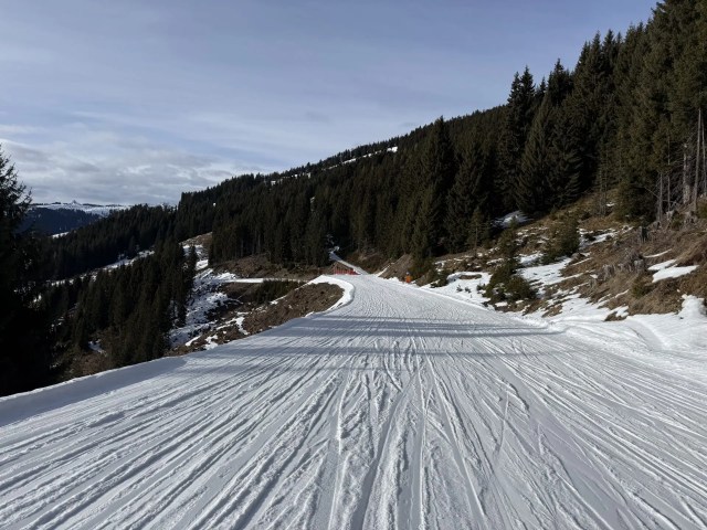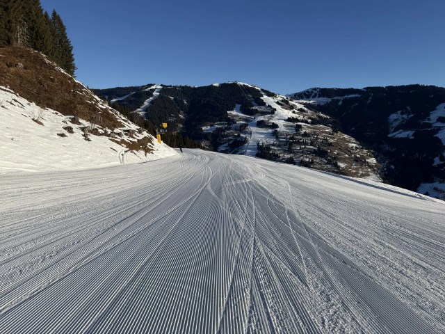Fresh corduroy carried us down run 2a to gondola I1 / I2, the eastern exit of Saalbach toward Zell am See.