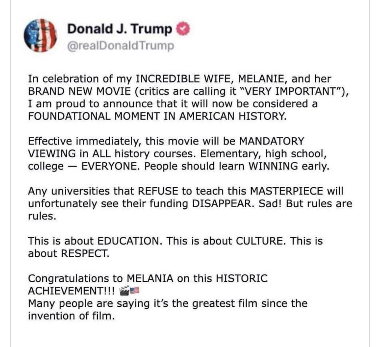 This is not a real tweet from him. Note the use of proper capital letters at the start of sentences. The punctuation, from commas to periods is correct. Not once he misused it’s for its, or their for there. And he spelled words like immediately, universities, and achievement correctly.