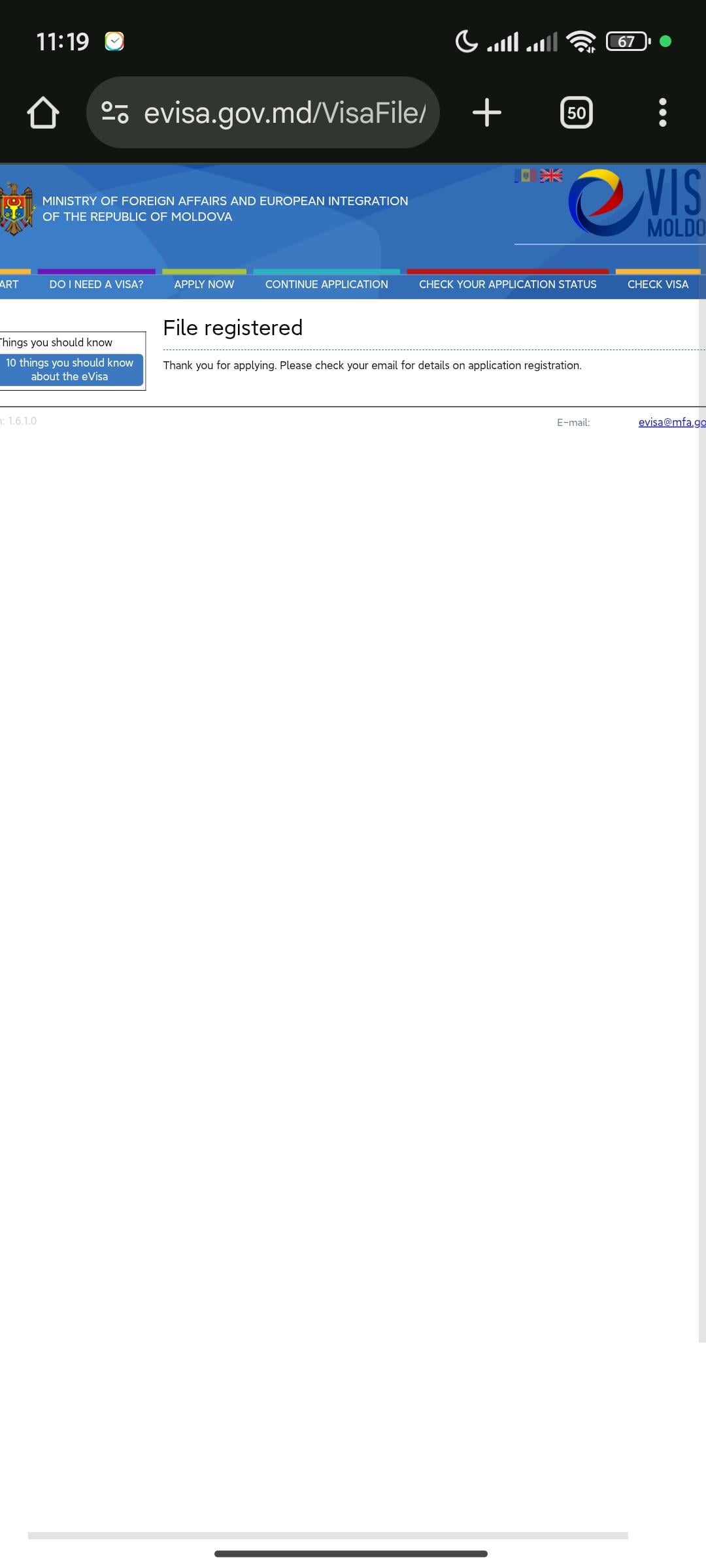 Technically you should be able to check the status here: [https://www.evisa.gov.md/VisaFile/Verifica?c=en-US](https://www.evisa.gov.md/VisaFile/Verifica?c=en-US) but you don’t have a “File number”.