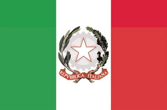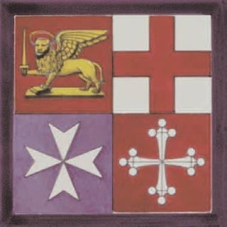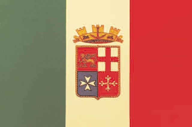 La bandiera della Marina Militare Italiana viene istituita il 9 Novembre 1947 con Decreto Legislativo n° 1305. Reca gli stemmi delle Repubbliche marinare di Venezia, Pisa, Genova ed Amalfi. Nella bandiera della marina mercantile il leone di san Marco non impugna la spada e sopra lo stemma non compare la corona turrita e rostrata.