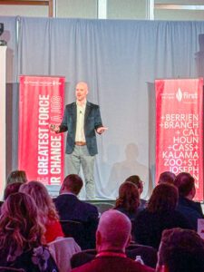 The program opened with a data-driven economic outlook from Dr. Chris Thornberg, founding partner of Beacon Economics, who provided timely analysis of the Southwest Michigan economy and broader national trends. Attendees also heard from futurist Erica Orange, who explored how artificial intelligence is reshaping business, talent, and innovation, and what leaders should be thinking about now to stay competitive.