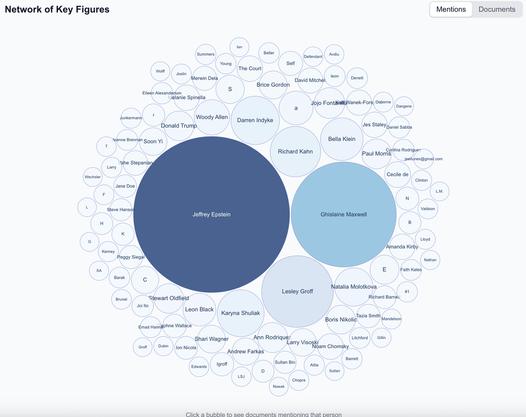 All of this data came from the DOJ’s Epstein Transparency Act releases, and the House Oversight Committee’s public releases. I used D3 for the visualizations.