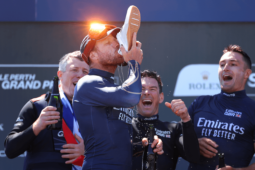 Emirates GBR’s Luke Parkinson did a traditional Australian ‘shoey’ of Champagne after winning in Perth (Photo: Paul Kane/Getty Images)
