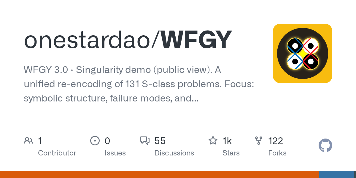 WFGY · All Principles Return to One (MIT, text only, 131 tension questions) https://github.com/onestardao/WFGY