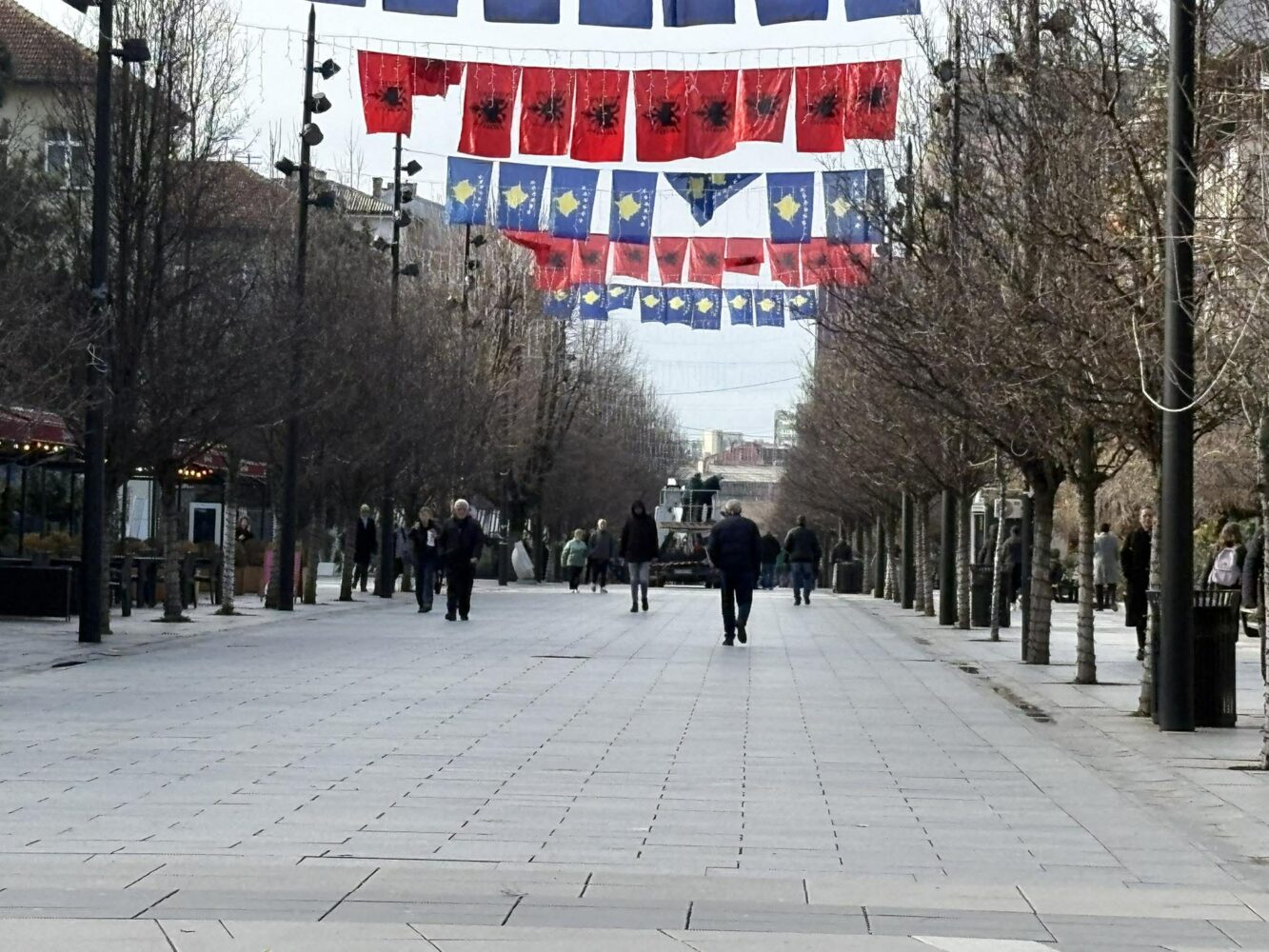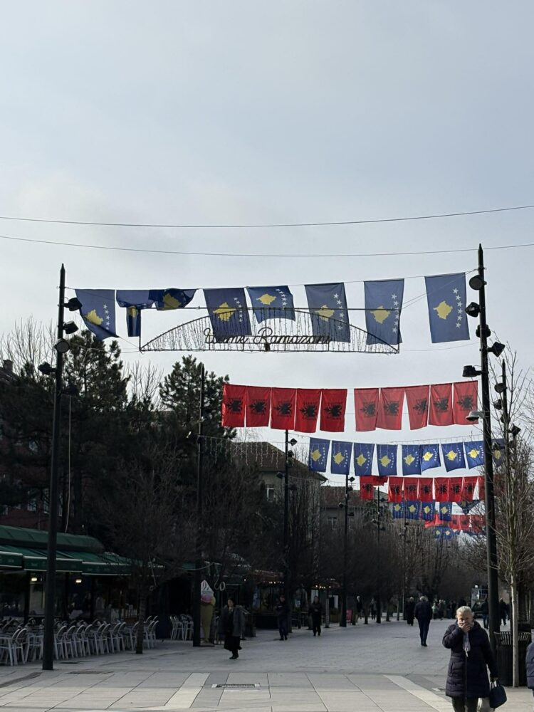 On the 18th anniversary of Kosovo’s declaration as an independent and sovereign state, Pristina Square is displaying the flags of Kosovo, but also the national flag alongside them.