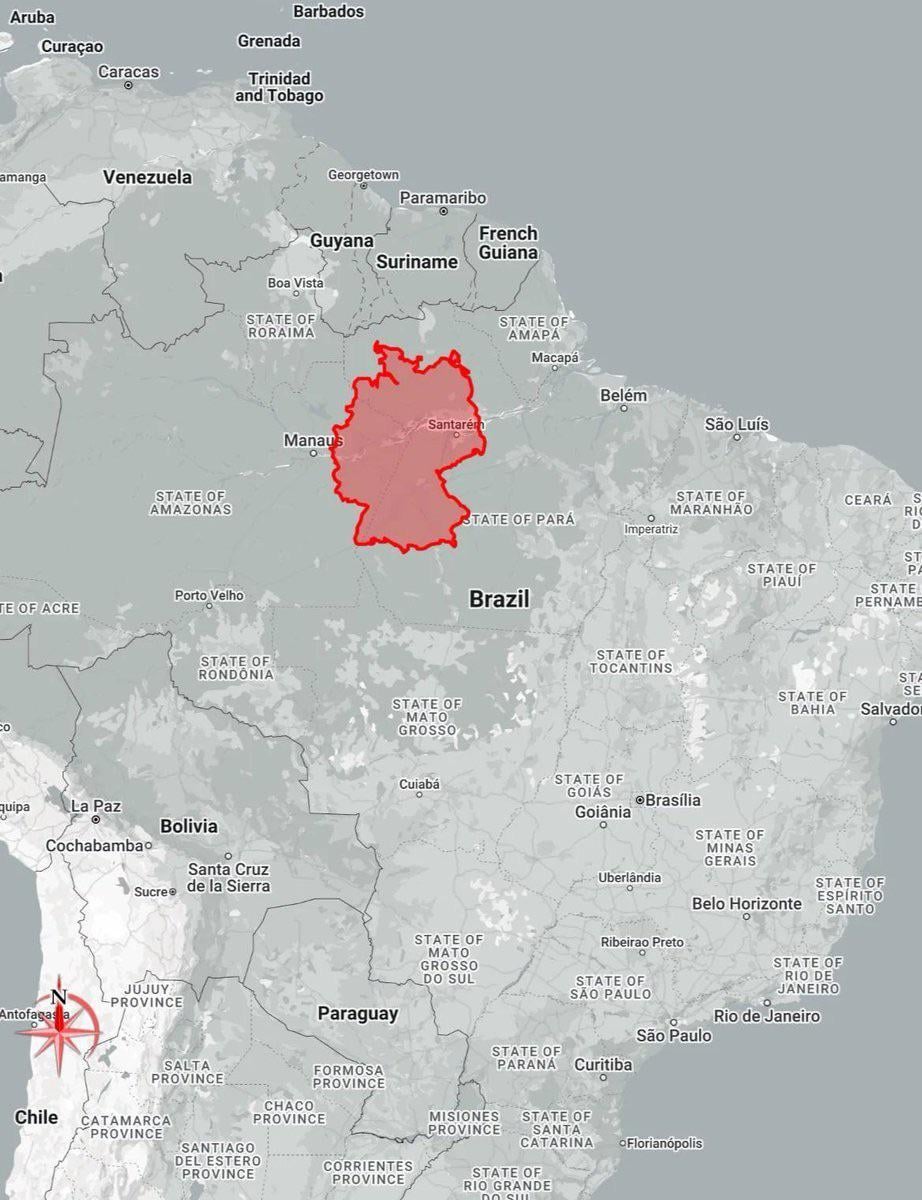 Germany’s true size projected over northern Brazil