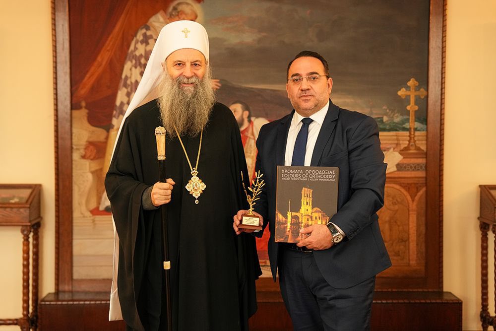 Patriarch Porfirije of Serbia received, on Friday, February 20, in Belgrade, Bishop Grigorios of Mesaoria, President of the Pilgrimage Office of the Church of Cyprus, as well as Kostas Koumis, Deputy Minister of Tourism of Cyprus. The visit took place on the occasion of the International Tourism Fair, at which Cyprus is the guest of honor.