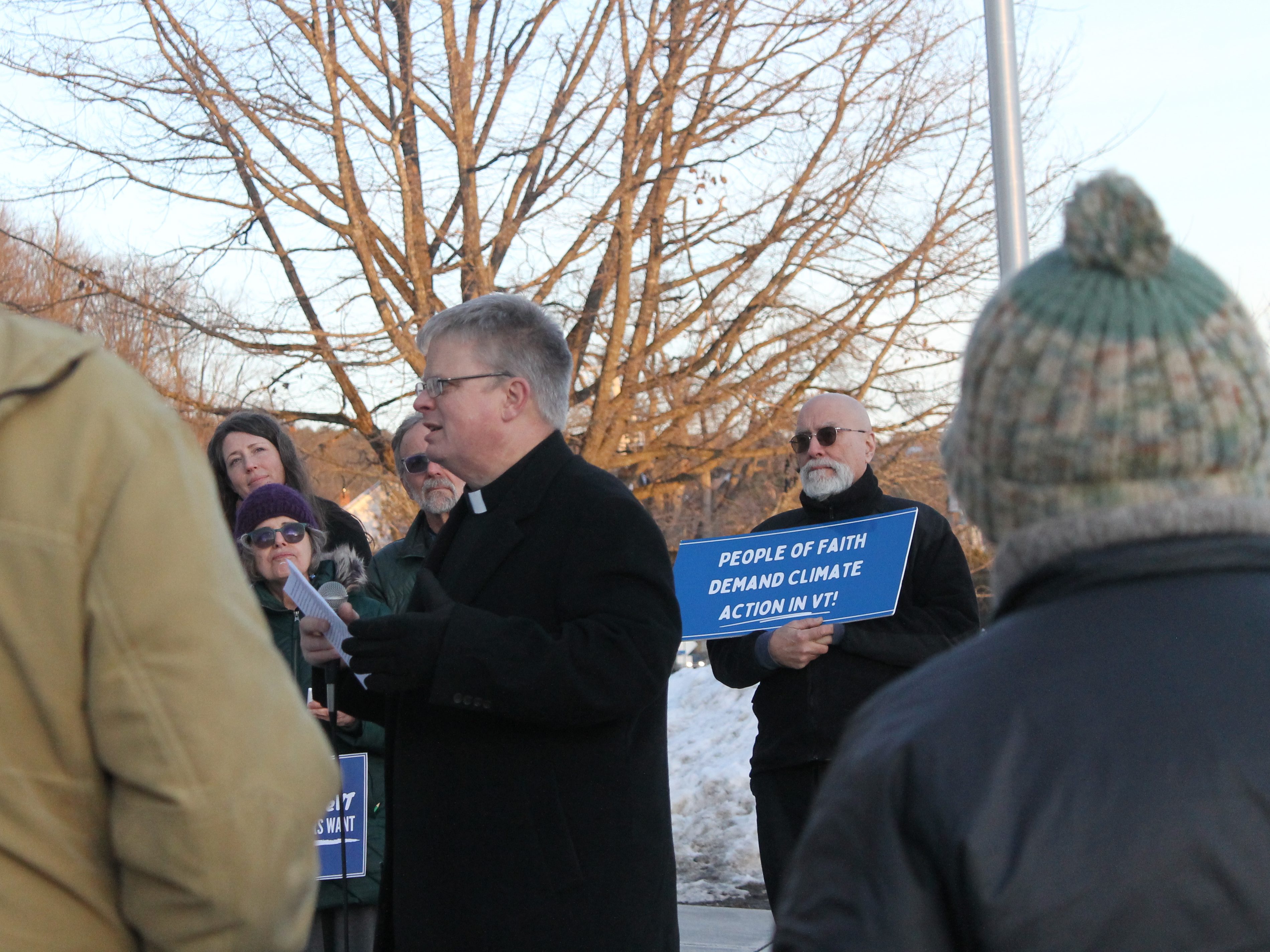 “We are a unique group with a unique voice,” said Ron McGarvey, the president of Vermont Interfaith Power and Light, who followed after her.
