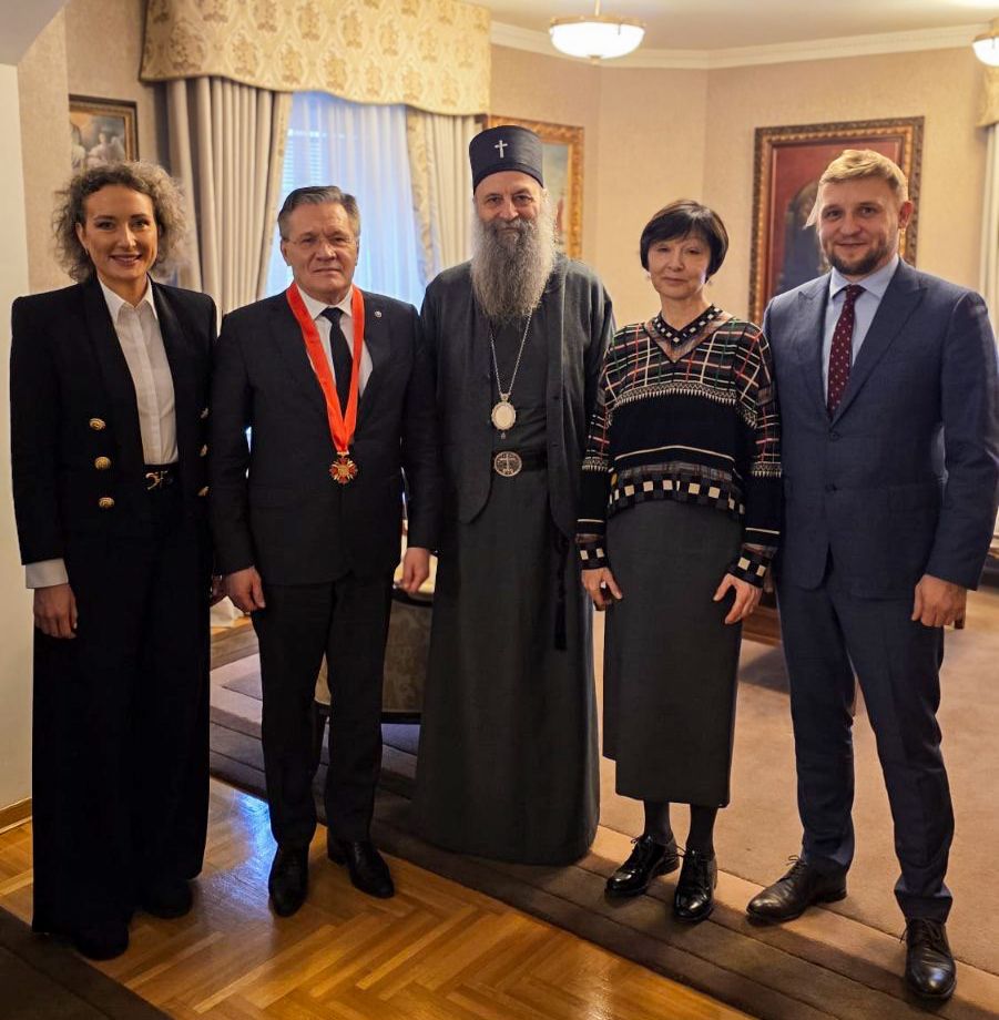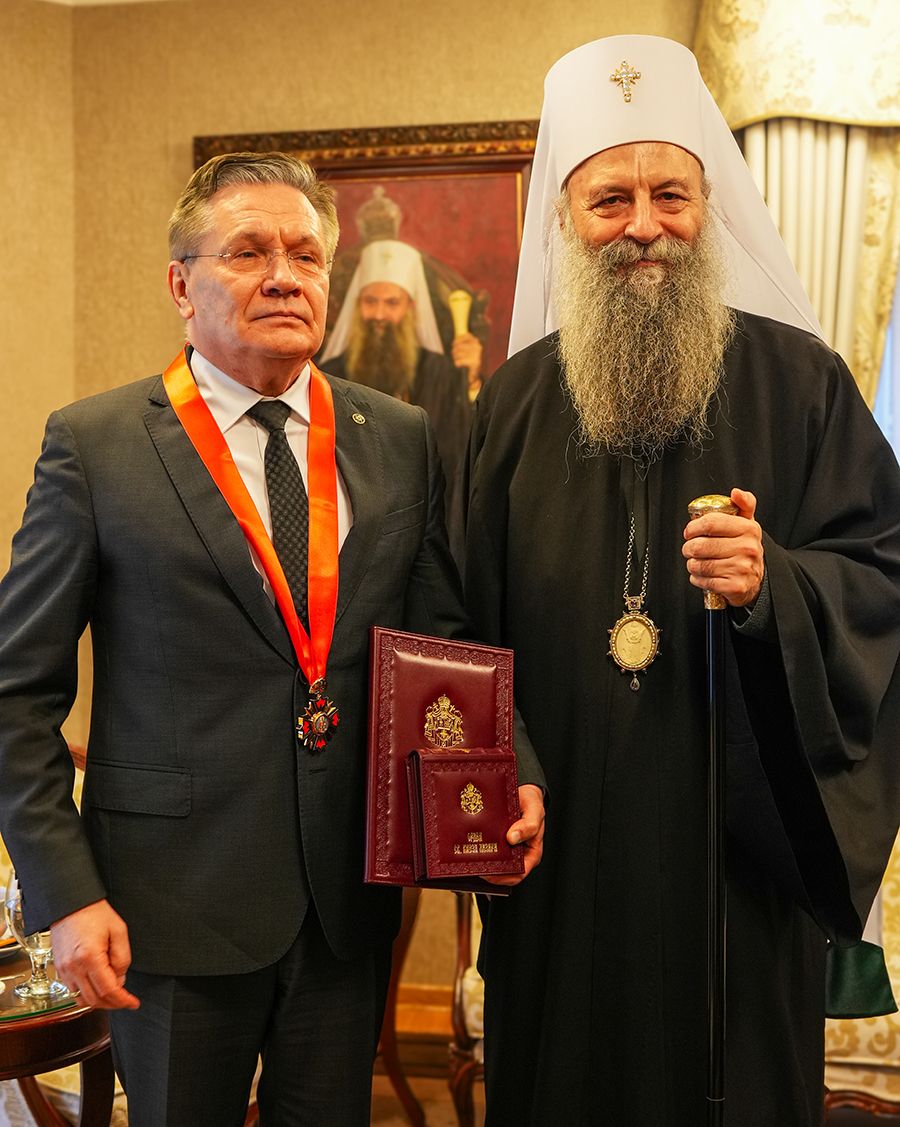 On February 21, 2026, Patriarch Porfirije of Serbia awarded the Order of Saint Prince Lazar to Alexey Evgenievich Likhachev, Director General of the State Corporation Rosatom and Director of the Foundation for the support of christian culture and heritage, during a ceremonial reception held at the Saint Sava Hall in Vračar.