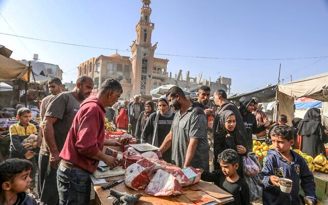 Palestinians shop at a market in Khan Younis, in the southern Gaza Strip, on November 21, 2025. (Abed Rahim Khatib/Flash90)