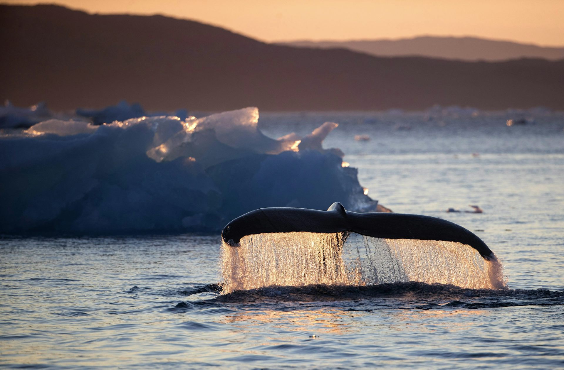 A humpback whale dives while swimming in the Nuup Kangerlua Fjord near Nuuk in southwestern Greenland. Increasing noise can impact marine wildlife and their ability to live in the ocean.