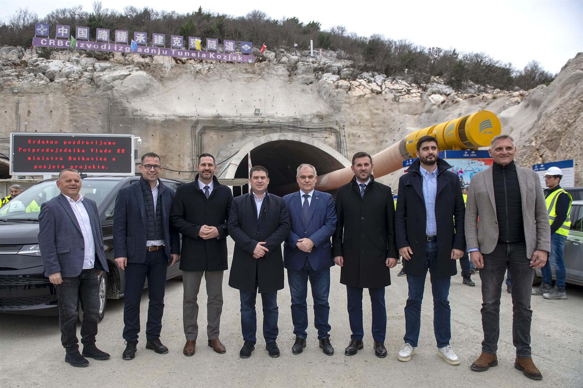Earlier in the day, officials toured works inside the Kozjak Tunnel and on the Mravince–TTTS section, part of the “Multimodal Platform of the Split Agglomeration” project: the Mravince–Stobreč–Dugi Rat–Omiš expressway.