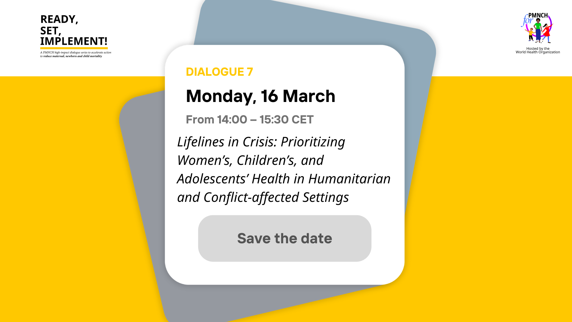 This high-level dialogue is part of PMNCH’s Ready, Set, Influence series, bringing together policymakers, humanitarian leaders, donors, and grassroots experts. The webinar will focus on accelerating the implementation of health commitments within humanitarian affairs, specifically focusing on the need for integrated, rights-based health services that remain resilient in the face of conflict, disaster and climate events.