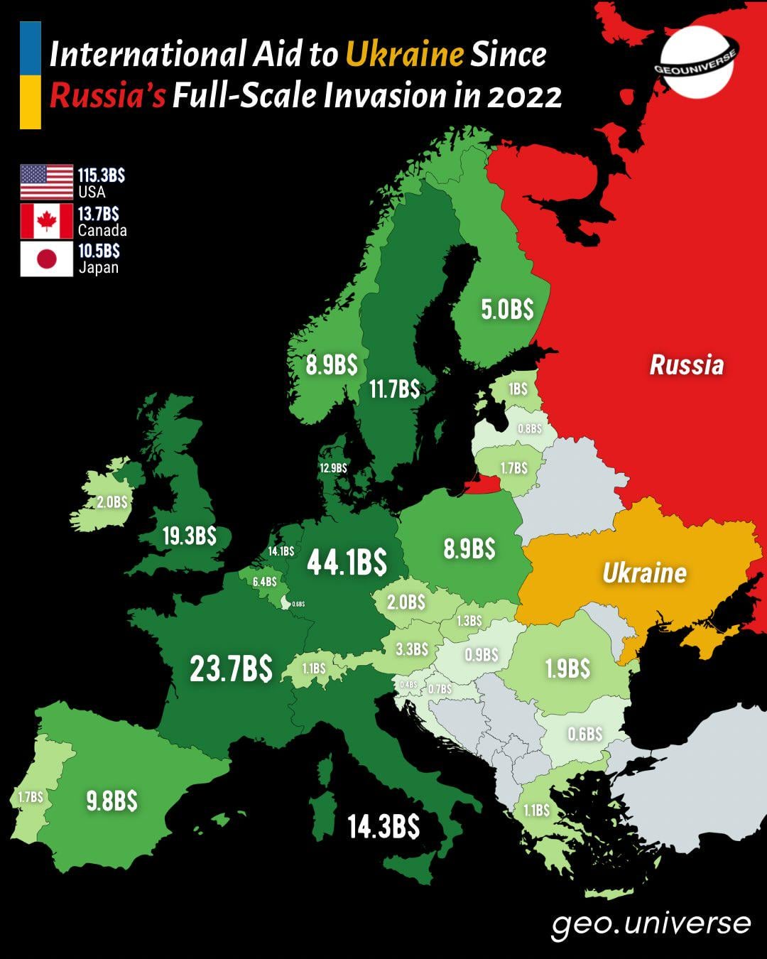 The UK has given £21.8 billion, this map is bullshit for most countries..
