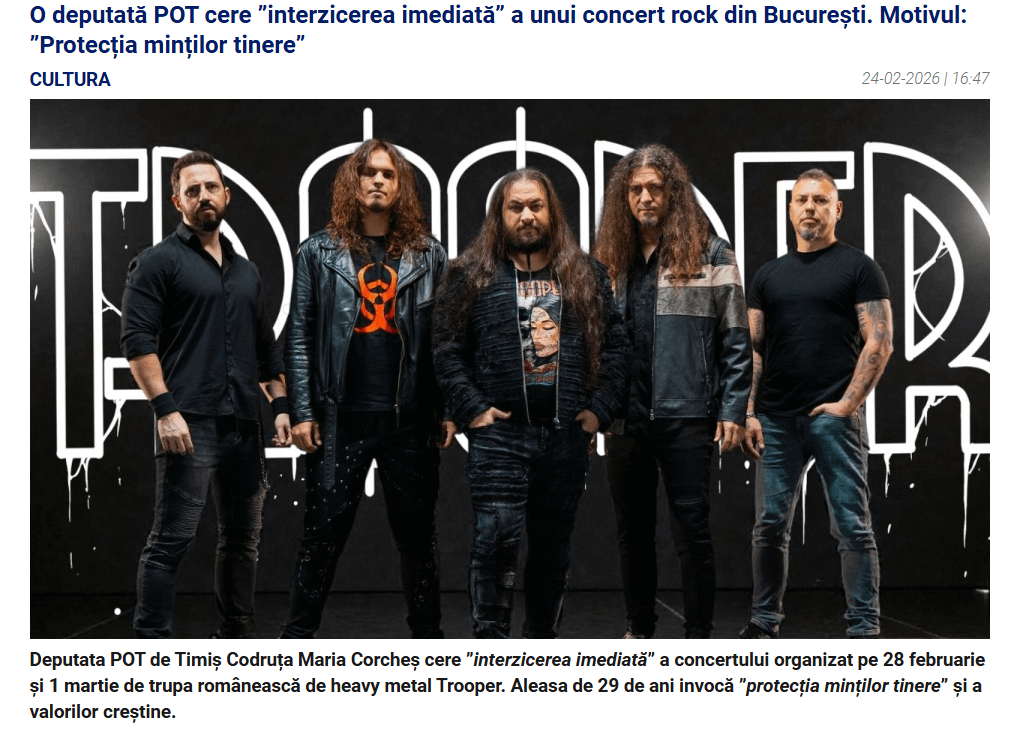 Fix de Trooper trebuie “protejate mintile tinere” si valorile crestine, in rest toata piata muzicala autohtona e in regula… Te umfla rasul cand citesti astfel de tictluri/articole, dar ti se si umfla o vena pe gat.