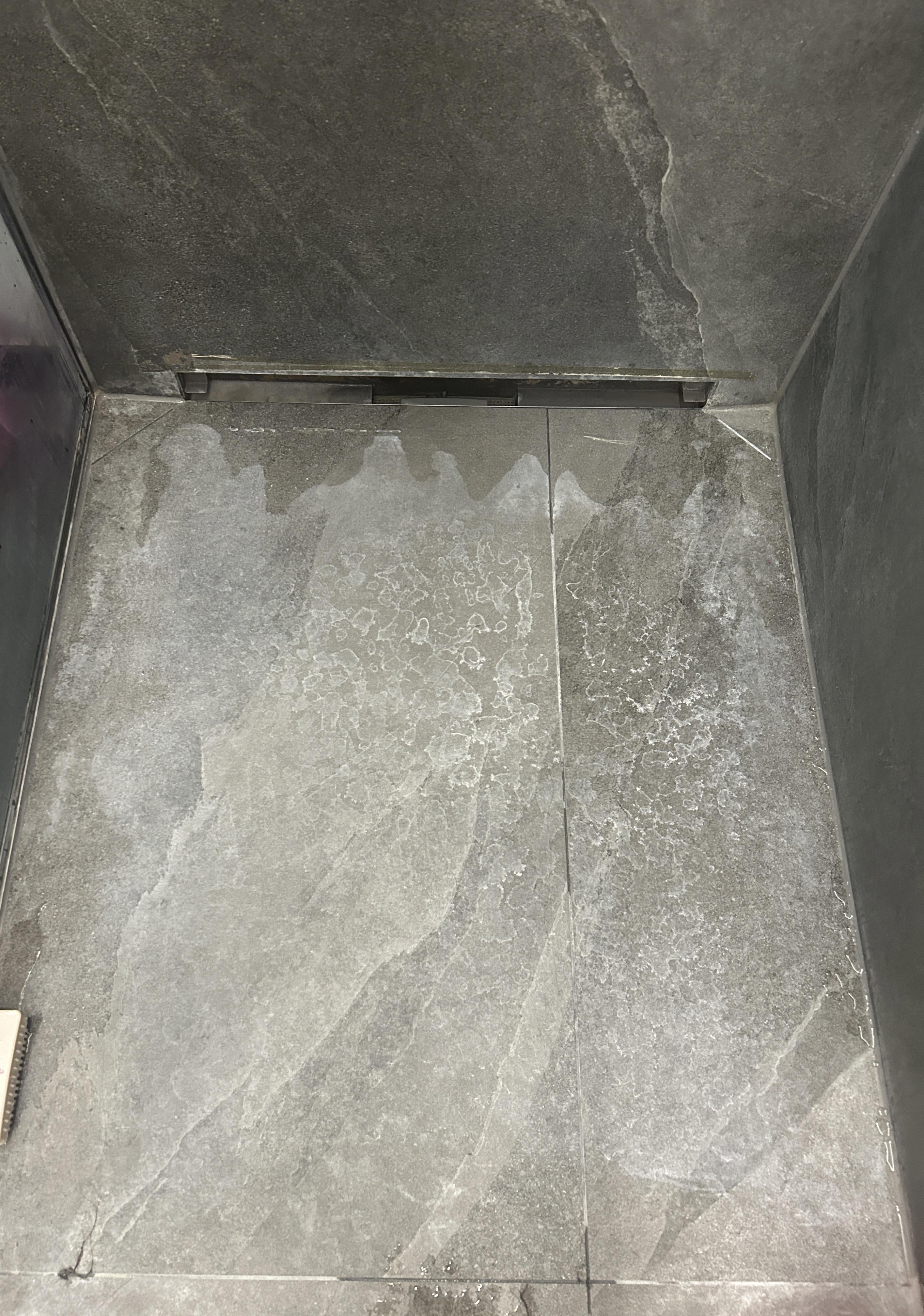I need some suggestion on the following. So my bathroom tiles look like they are made of natural stone. I used random acidic cleaner and scrubbed it well thinking it will help remove the hard water deposit.