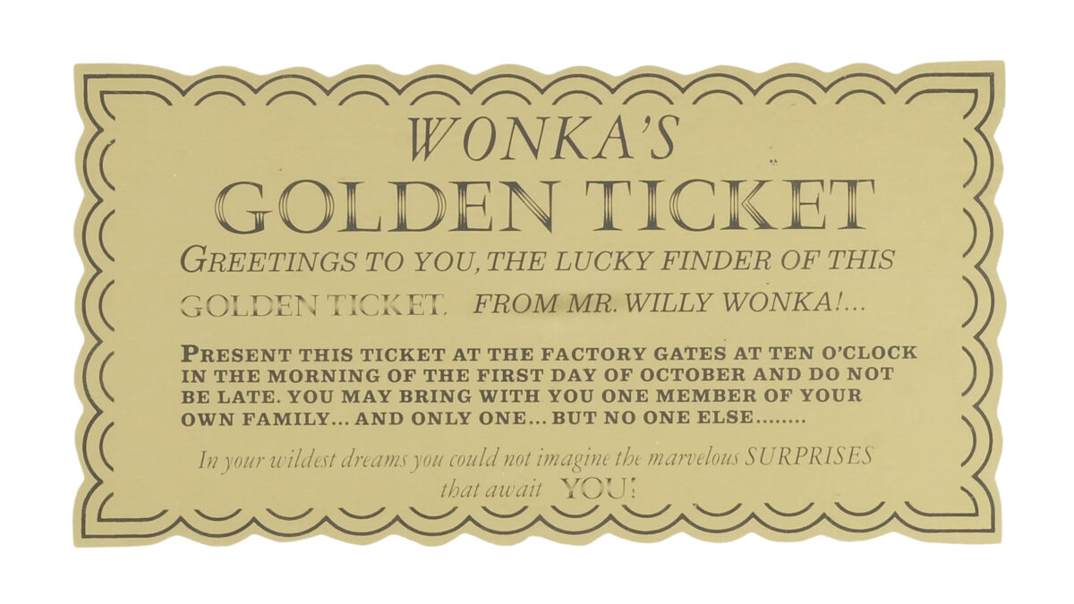 Golden Ticket from “Willy Wonka and the Chocolate Factory” (1971)Credit: Photo courtesy Propstore
