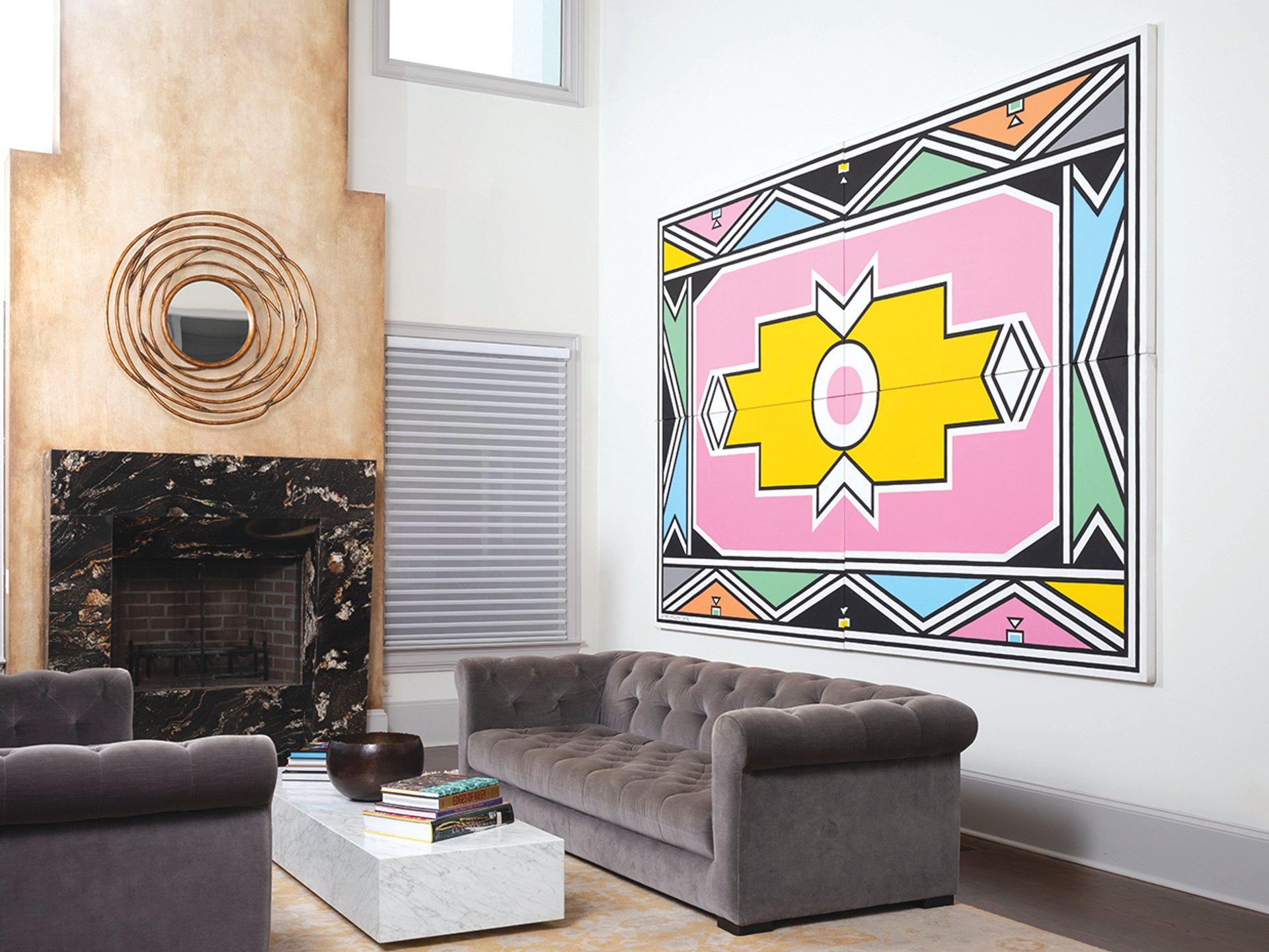 Untitled (2024) by Esther Mahlangu; in 2024, Smith co-curated an exhibition of the South African artist’s work at ZuCot Gallery in his hometown of Atlanta Walker Bankson