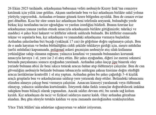 Petty Officer Mehmet Öztürk: “Just because I warned the 4 men who were harassing the girl on the beach, 10 people attacked me with knives, machetes and sticks as in the video, broke my arm, and I was imprisoned for 13 months because I shot the tire of the crazy materialistic pervert who tried to crush us with his jeep so that he could not crush me and the girl.”