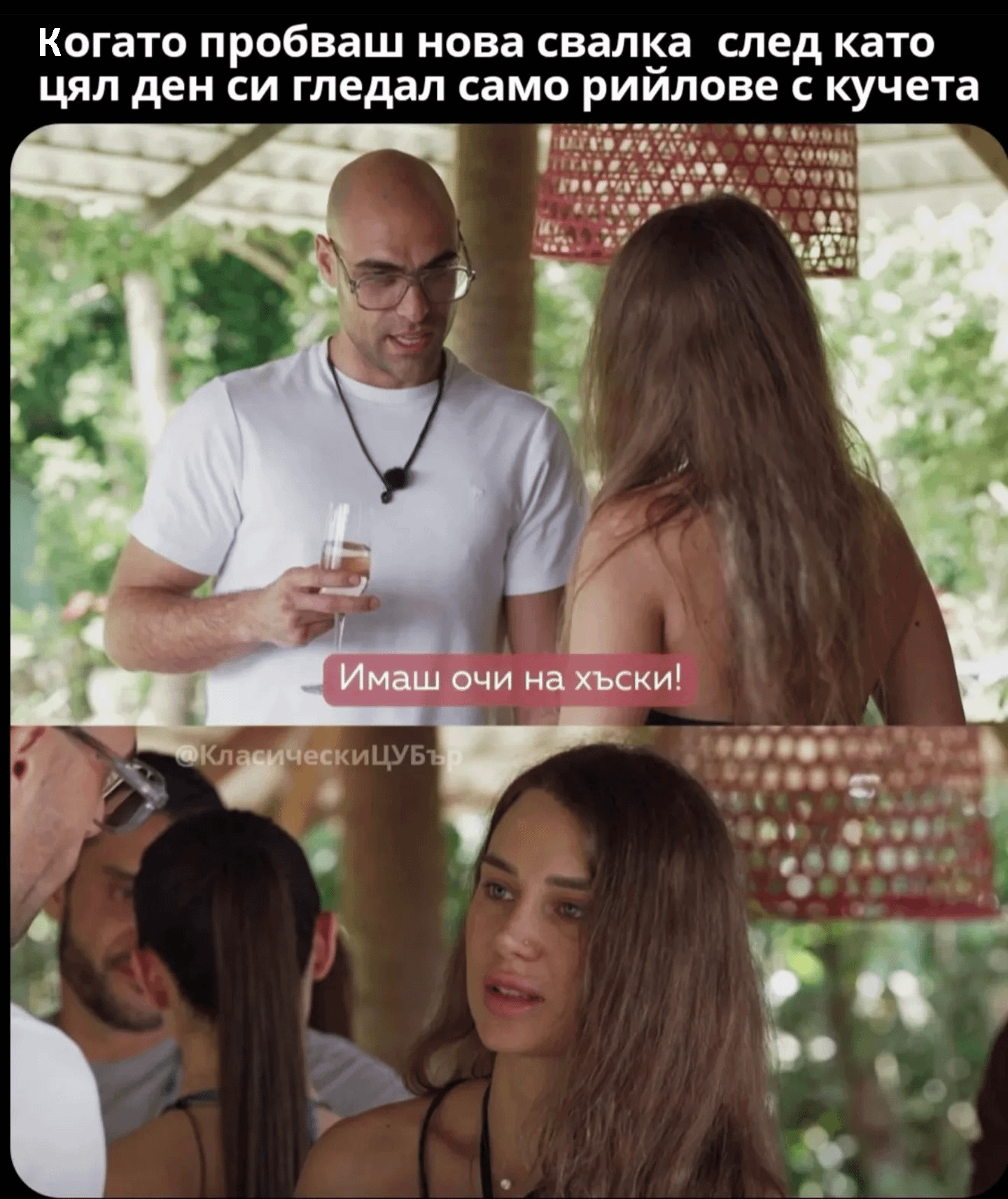 Много зле е работата. На едната и запомних името, защото всеки път като мина покрай телевизора я показват да се обеснява и да развива някакви теории за ухажването и любовта. 🥴 На госпожица Цвети Велева някой трябва да и каже, че светът не се върти около нея.