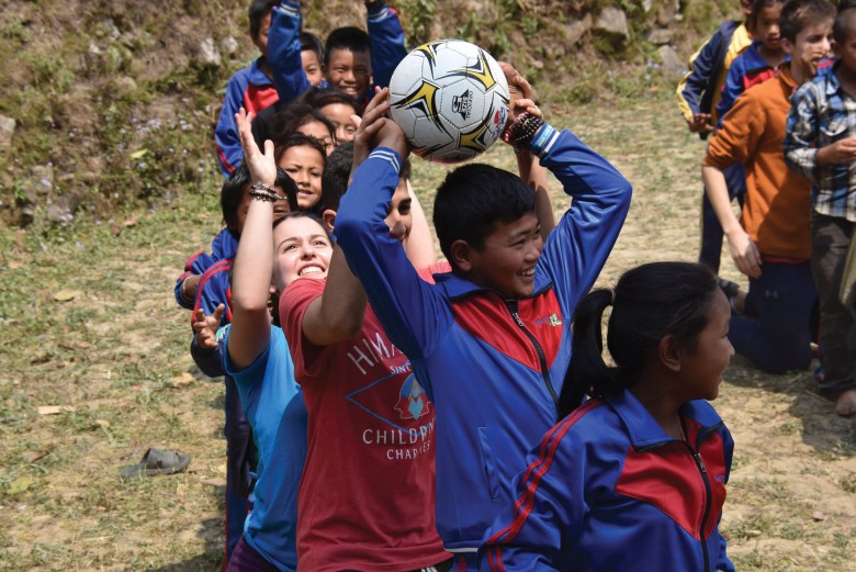 Teens from the Maya Gold Foundation visiting the Singha Devi School in rural Nepal in 2018.