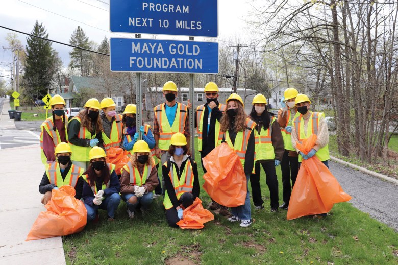 Teens and board members during a 2021 highway cleanup in New Paltz.