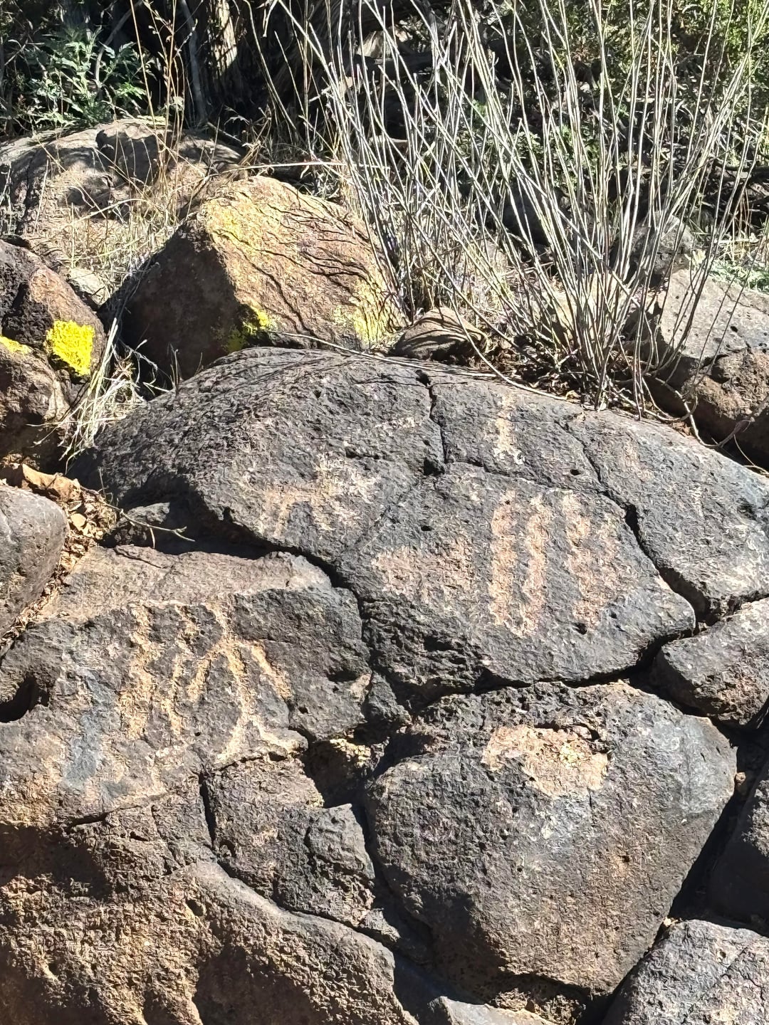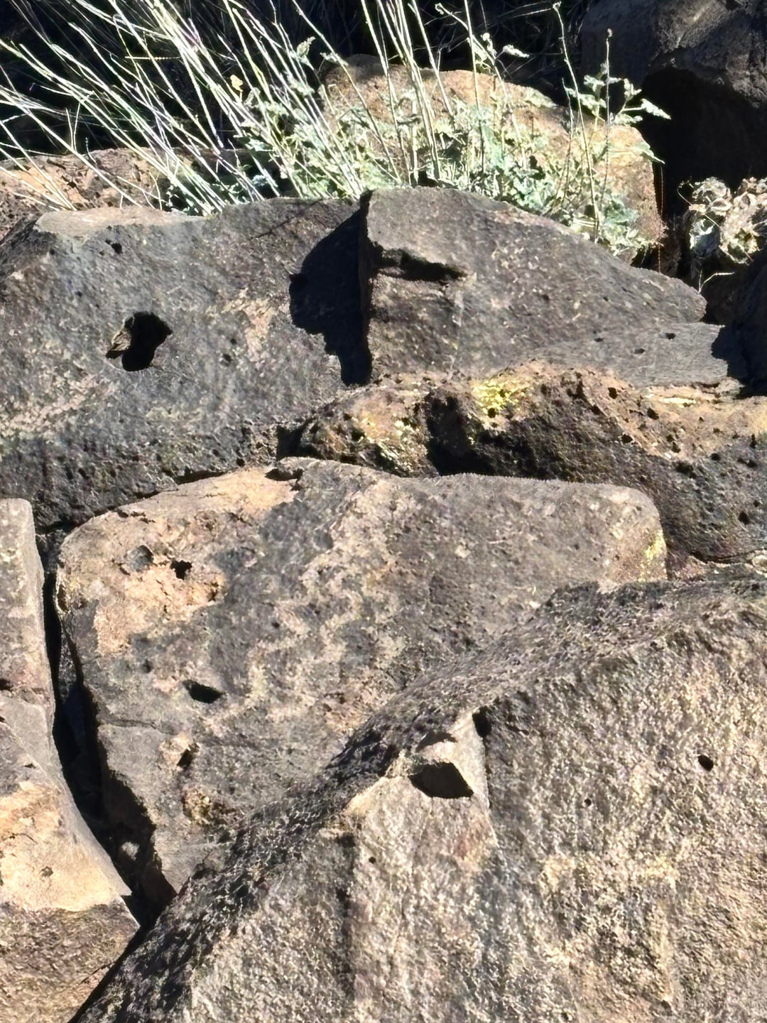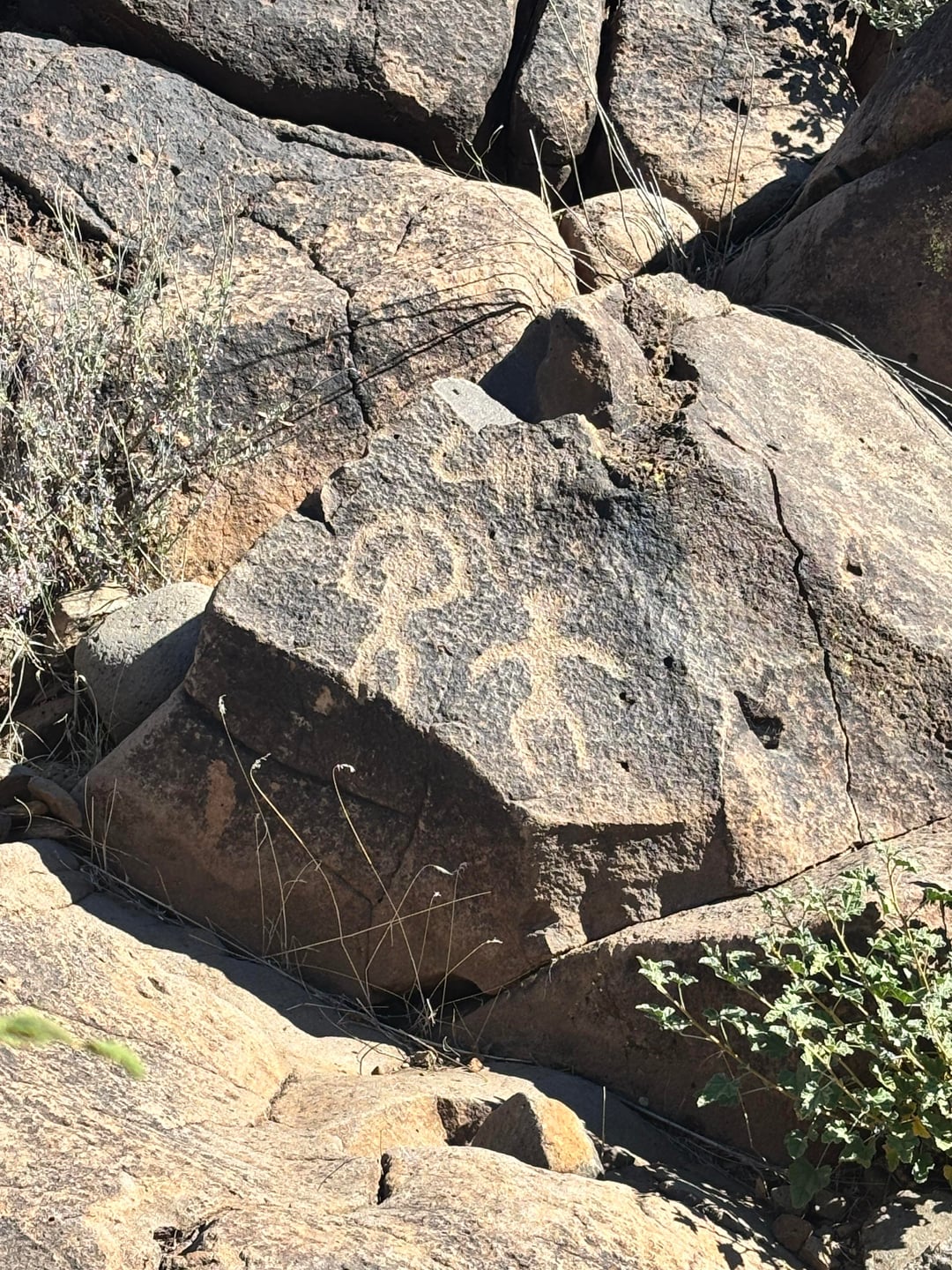 There were broken little bits of pottery everywhere, buddy found an arrowhead, lots of possible scrap arrowheads/tools and even a metate. Non stop petroglyphs on both sides of a small ravine. Somewhere in Arizona, you will have to find it haha.