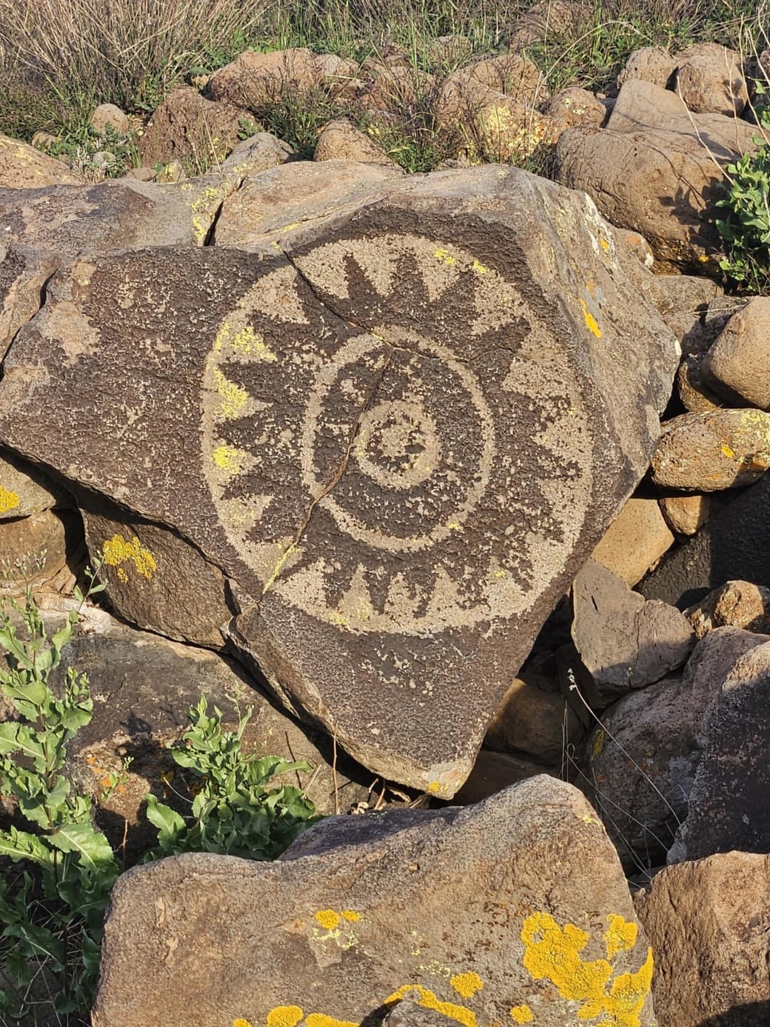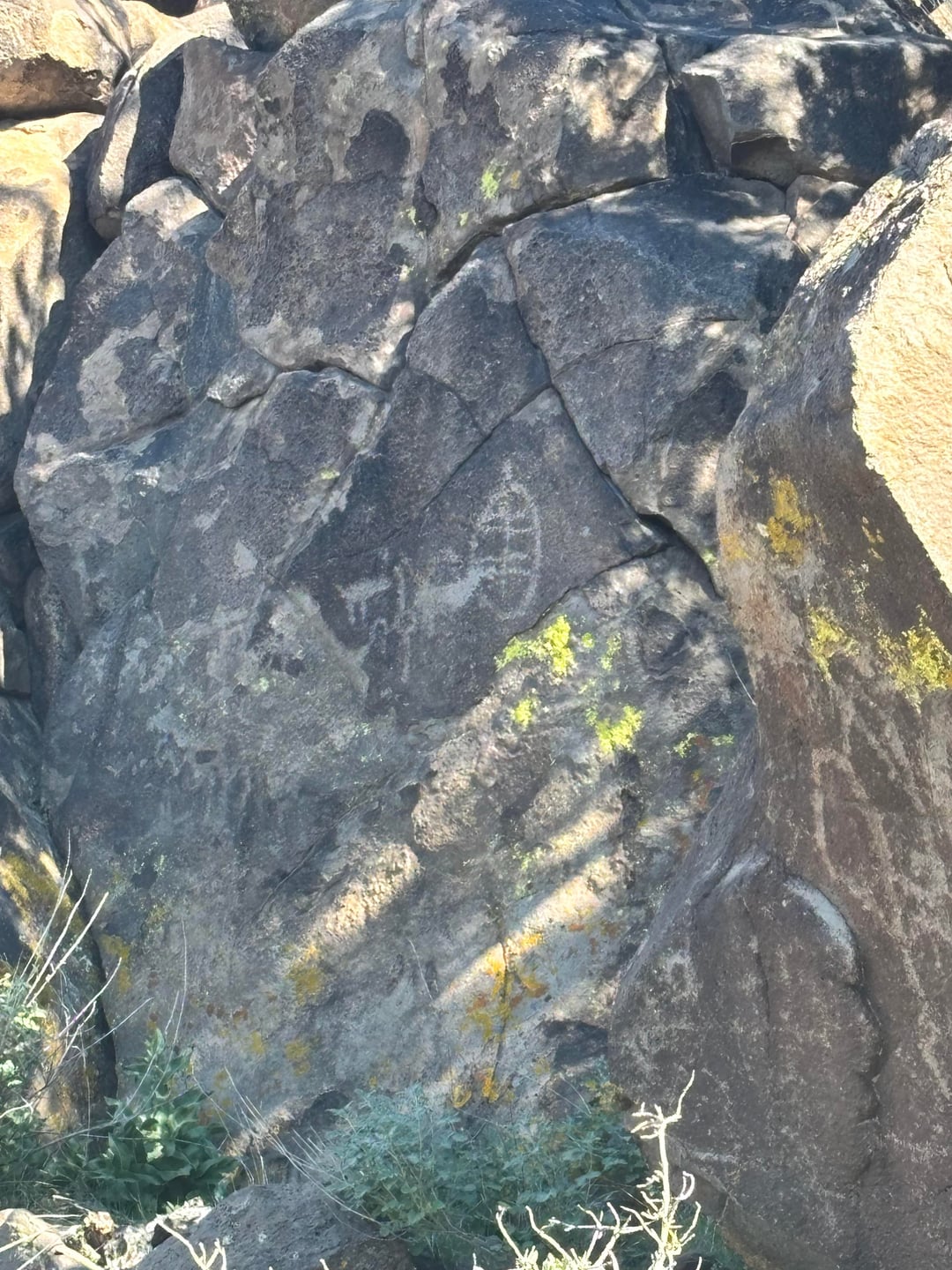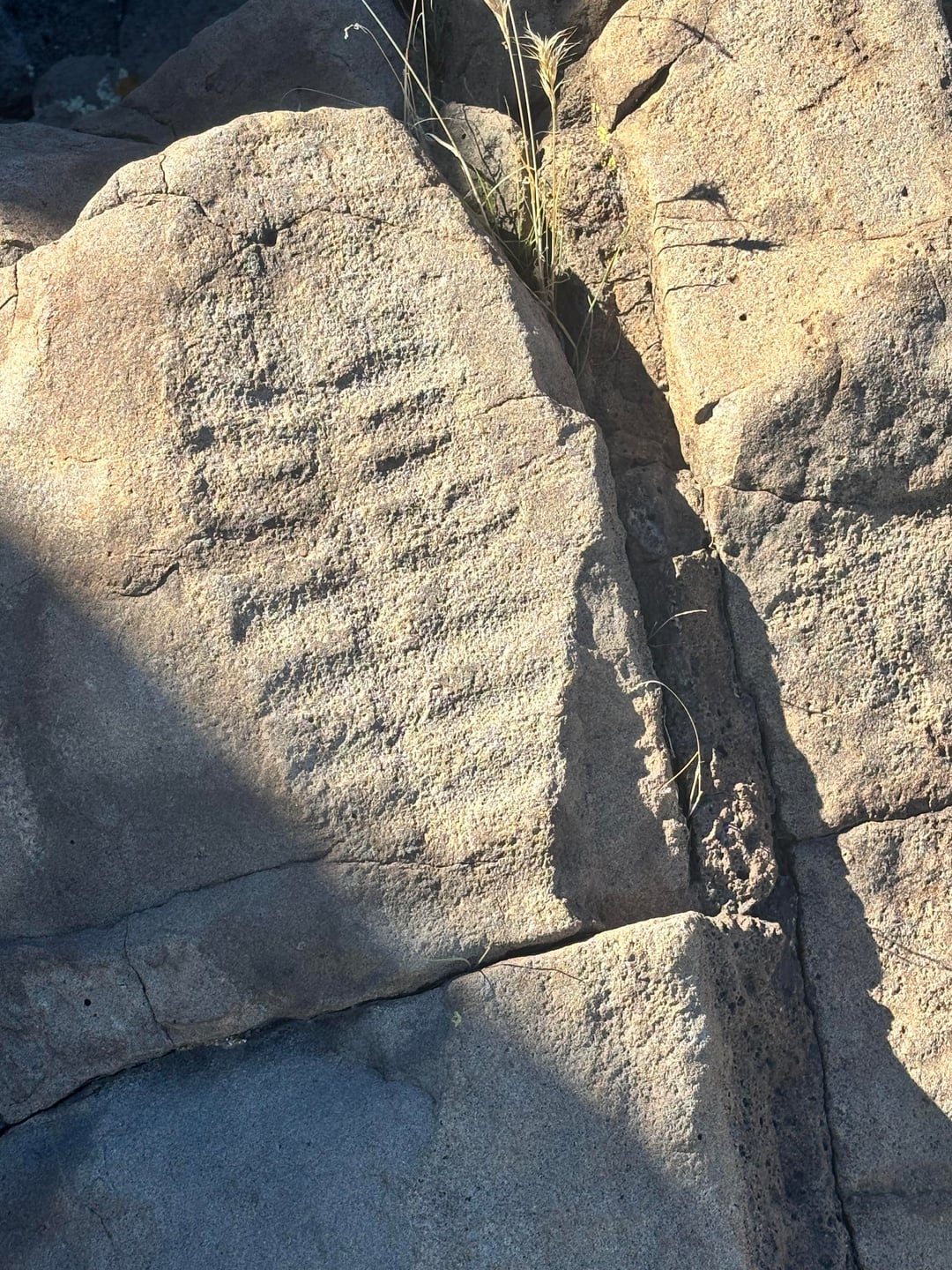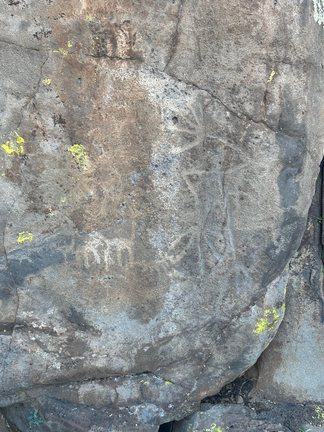 There were broken little bits of pottery everywhere, buddy found an arrowhead, lots of possible scrap arrowheads/tools and even a metate. Non stop petroglyphs on both sides of a small ravine. Somewhere in Arizona, you will have to find it haha.
