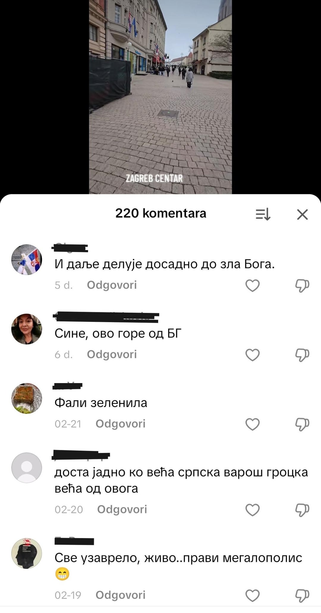 I’m scrolling through TikTok and some random video in the center of Zagreb comes up. There is nothing provocative in the video, the footage of the walk around the cathedral is ok. Now, there have always been complexes and comments like this, as shown in the attachment, but out of over 200 comments from the video, literally all of them are of this type, so it’s a little sad, honestly. I know that this is a vocal minority and that everywhere, just like here, there are fools, to put it mildly, but I don’t know about you, but I have not yet come across a video from Serbia, i.e. Belgrade, for example, that the Rvatin horde writes such nonsense and that all the comments are of the same type. Is it so difficult only if you don’t like the content of something that you simply ignore it and move on. I’m only interested in the brains of such people who are haunted by anger and complexes when they see content like this, which doesn’t suit them because Croatia.