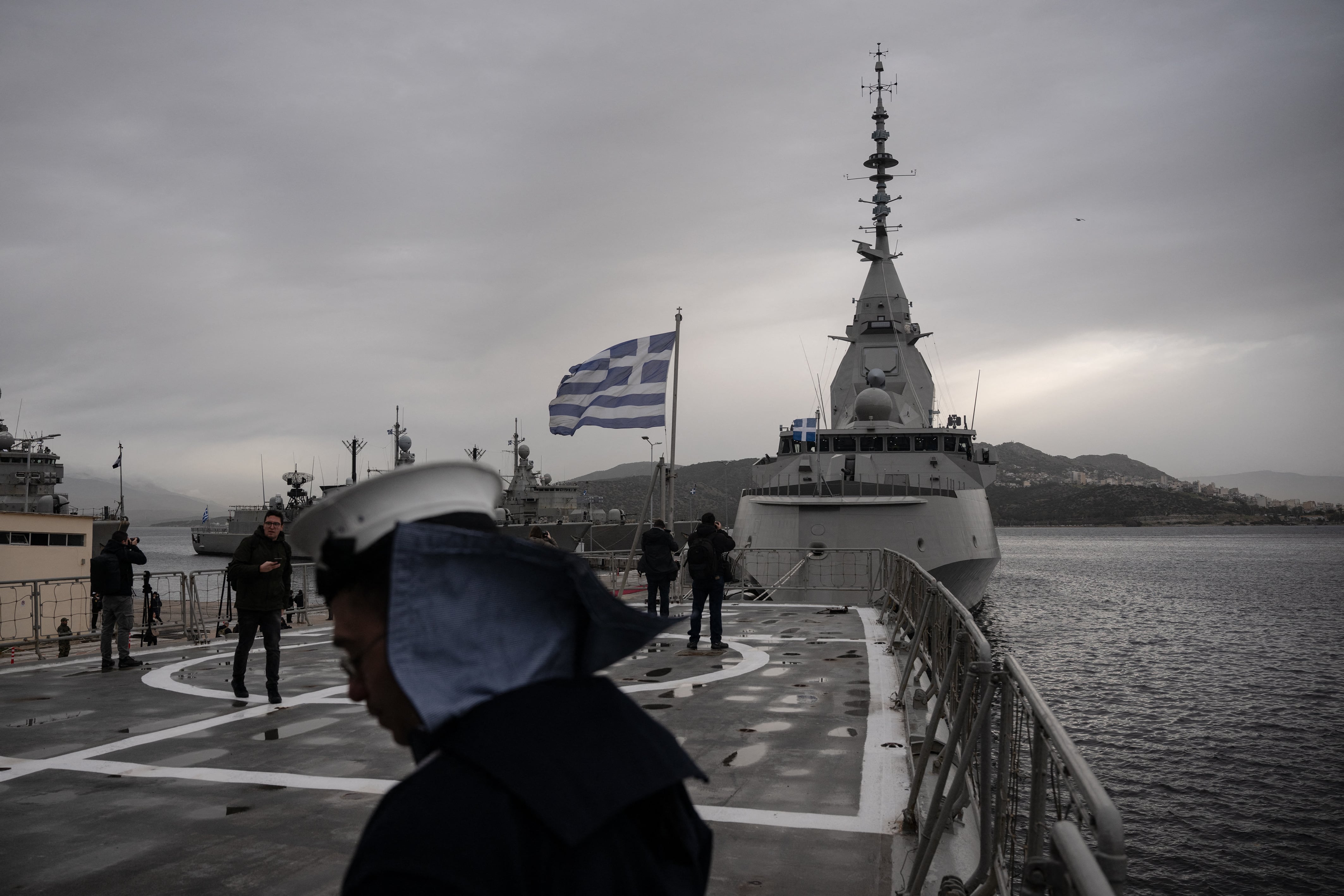 Greece’s new French-built frigate “Kimon” is moored at the Salamina naval station near Athens, on Jan. 29, 2026. (Angelos Tzortzinis / AFP via Getty Images)