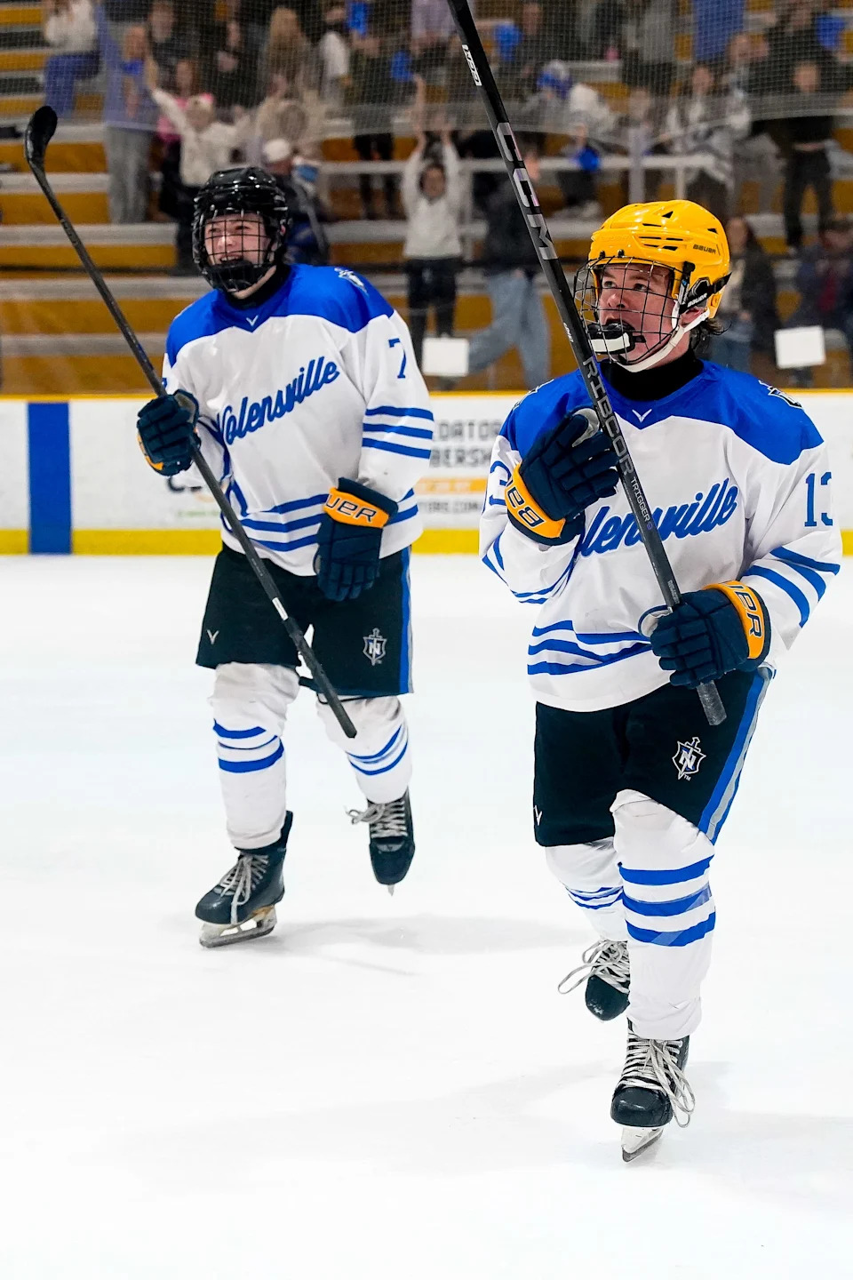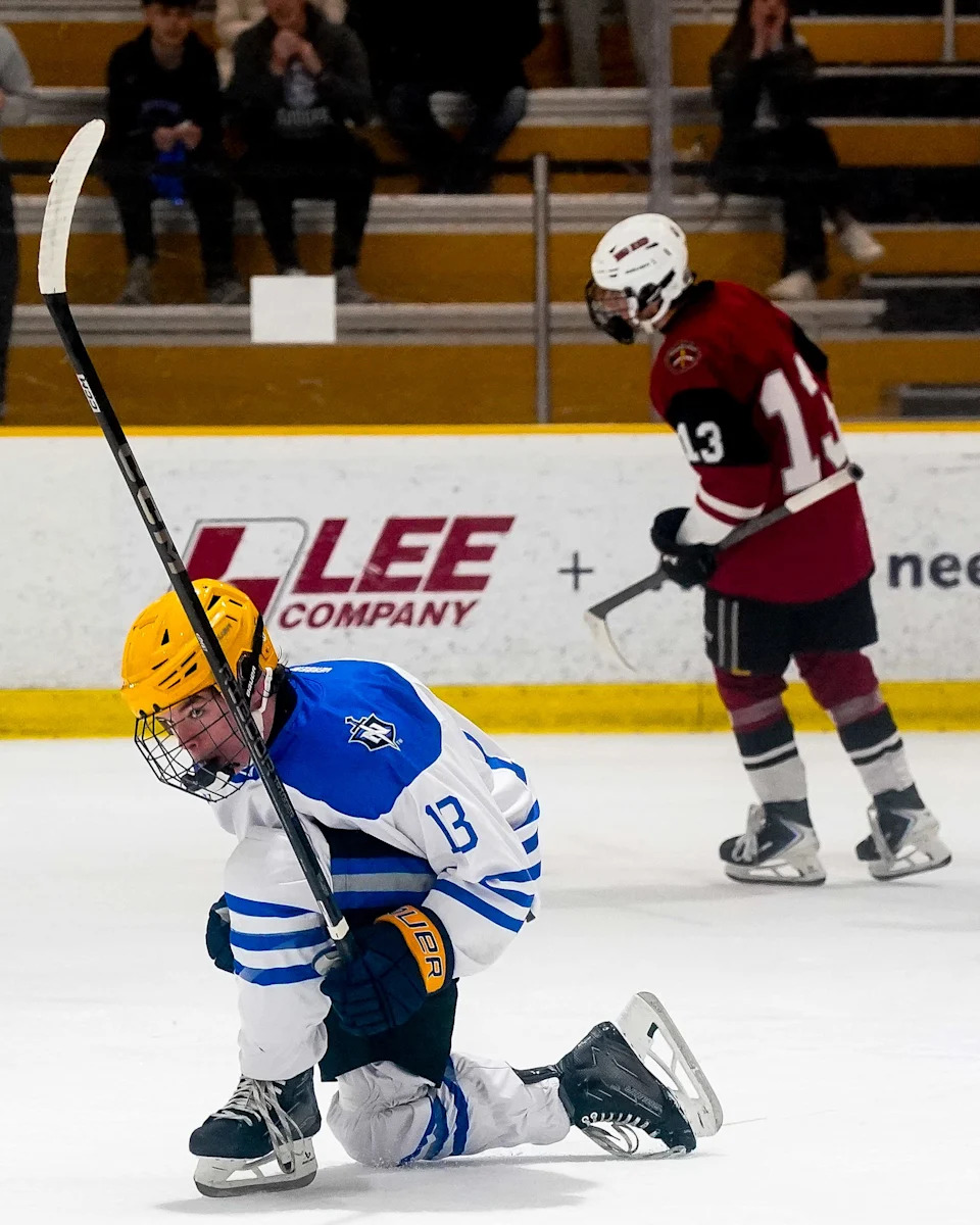 Nolensville’s Judah Campbell (13) celebrates his goal against MBA during the second period of a GNASH Predators Cup high school hockey championship game at the Ford Ice Center Bellevue in Nashville, Tenn., Monday, March 2, 2026.
