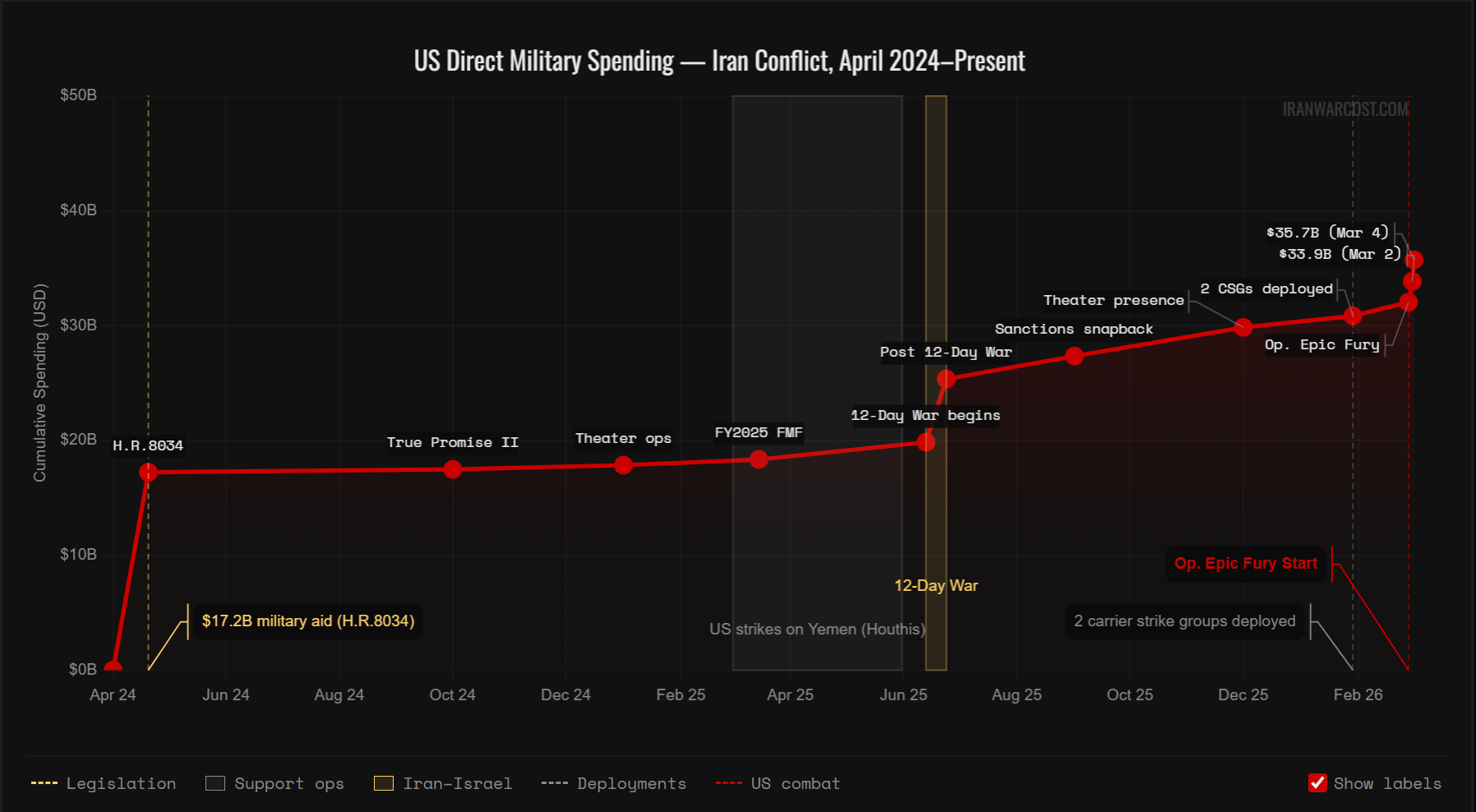 Why are we including military aid unrelated to the Iran war? Most of this cannot be called “Direct Military Spending” at all.
