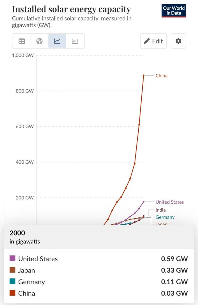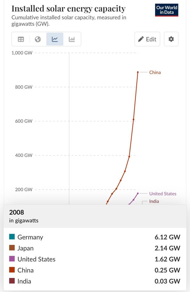 While this look impressive, I would still say the relevant measure would be “per capita” or “per 1 milion square kilometer”. Or use EU and not Germany for the comparison.