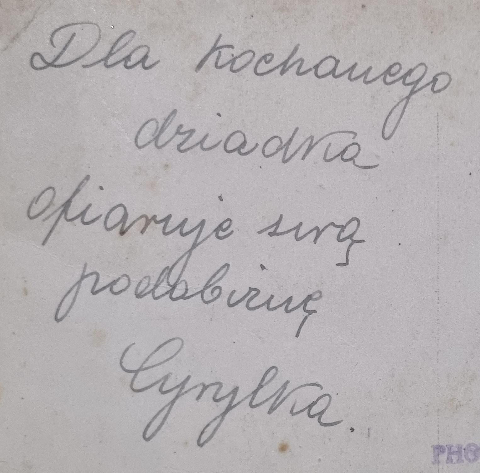 “I offer my image to my beloved grandfather, signed Cyrylka”. It’s phrased in a pretty old-fashioned way and “Cyryla” is quite an uncommon female name tbh.