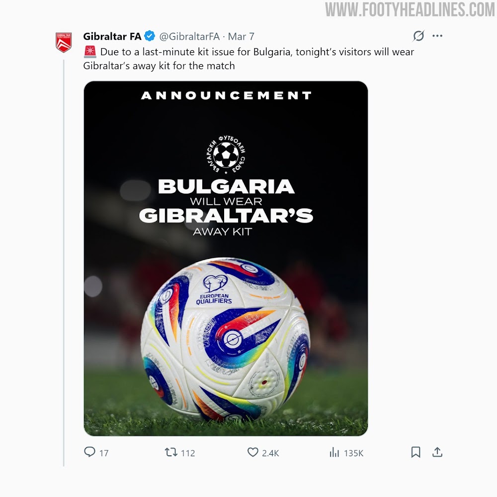 The visitors reportedly only brought their red away kit, which clashed with Gibraltar’s colors. To avoid a delay and ensure the match could go ahead, Gibraltar provided their own 2024 away kit for Bulgaria to wear.