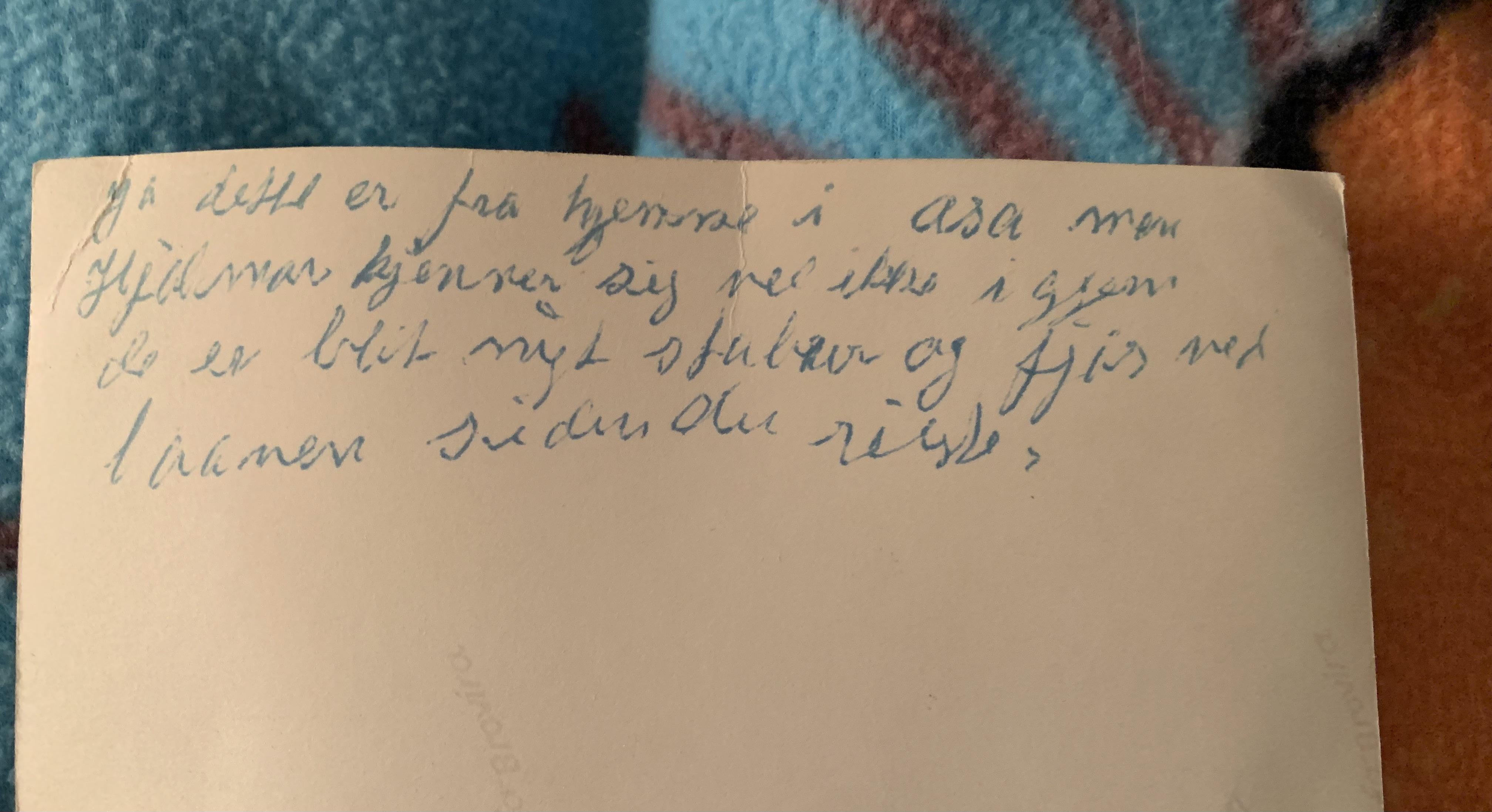Så dette er fra hjemme i Asa men Hjalmar kjenner seg vel ikke igjen. Det er blit nyt stabur og fjøs ved laaven siden du reiste.