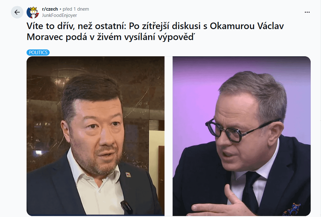 Moravec už něco naznačoval v jednom rozhovoru dříve