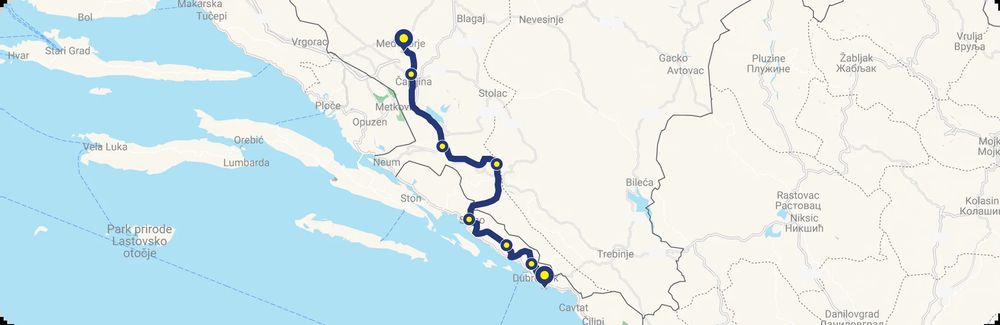 Along the way, pilgrims pass through Dubrovnik, the Dubrovnik Littoral region, Ravno, Neum, Čapljina and Čitluk, experiencing diverse scenery that ranges from the Mediterranean coastline to the hills of Herzegovina.