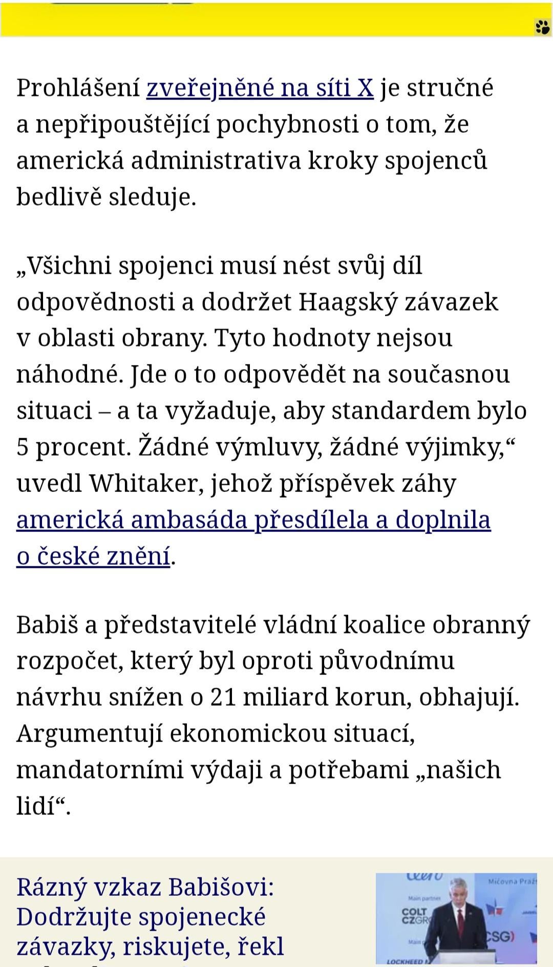 Ten ať jde taky do prdele, fakt nepotřebujeme x% HDP na armádu, aby je pak ANO, nebo ODS poslali umírat do Iránu kvůli zakrytí Epstein files.